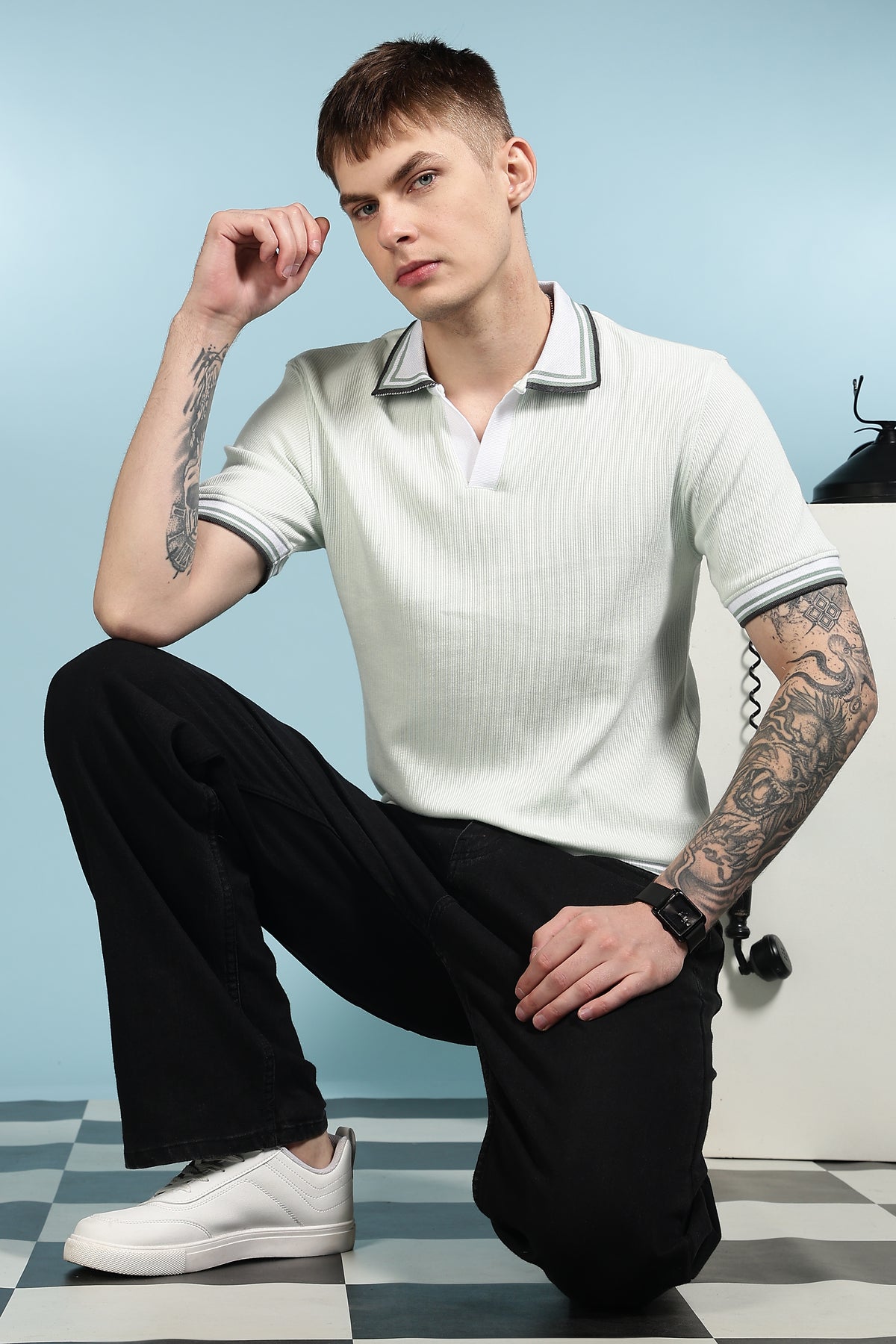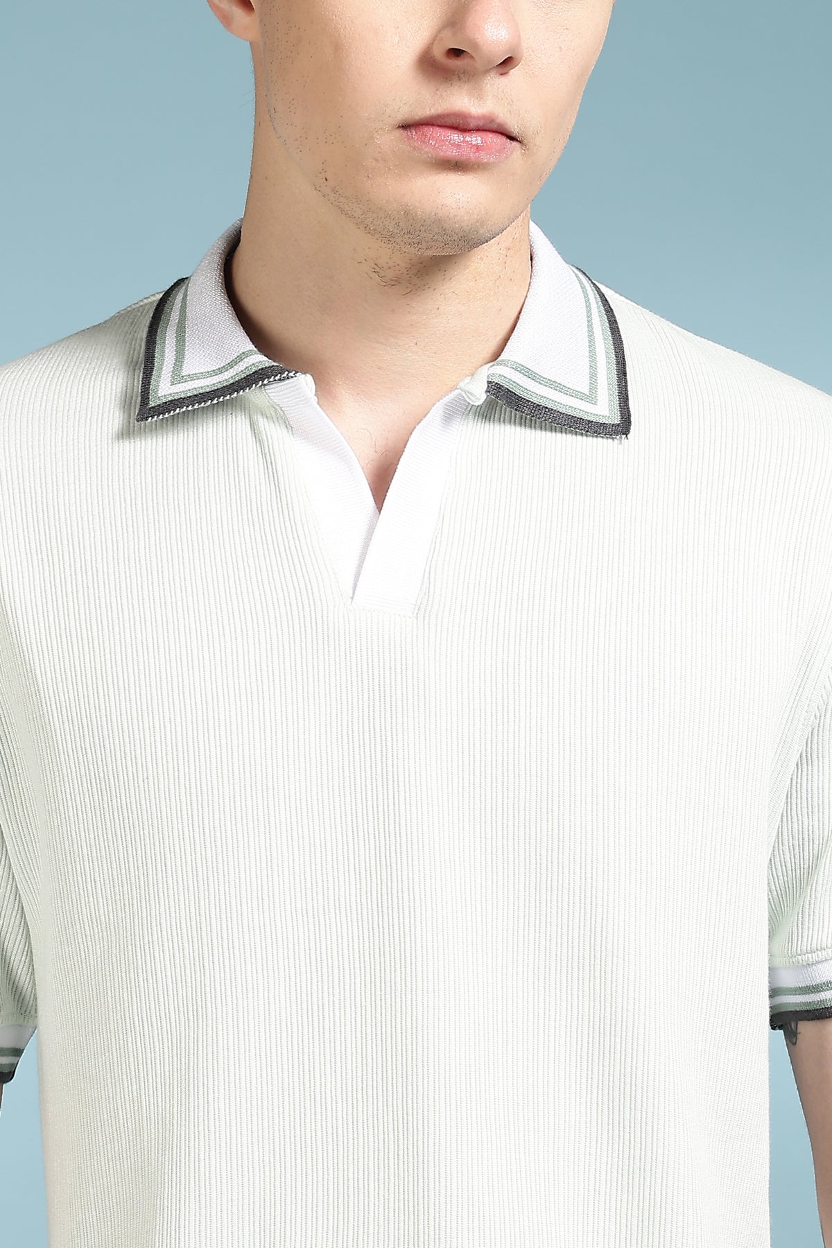 Unique Collar: Textured Fabric Polo Shirt