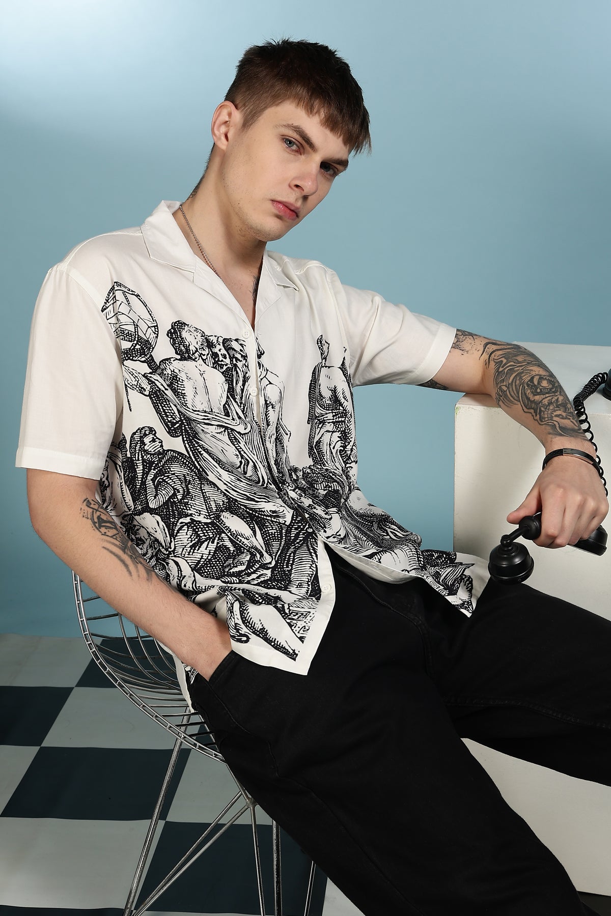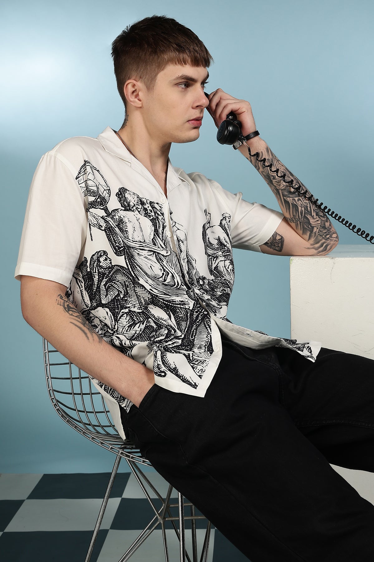 Introducing our Neolithic art Cuban Shirt, where tropical charm meets contemporary style. Embrace the vibrant energy of lush botanicals with this captivating piece, perfect for adding a pop of color to any wardrobe.
