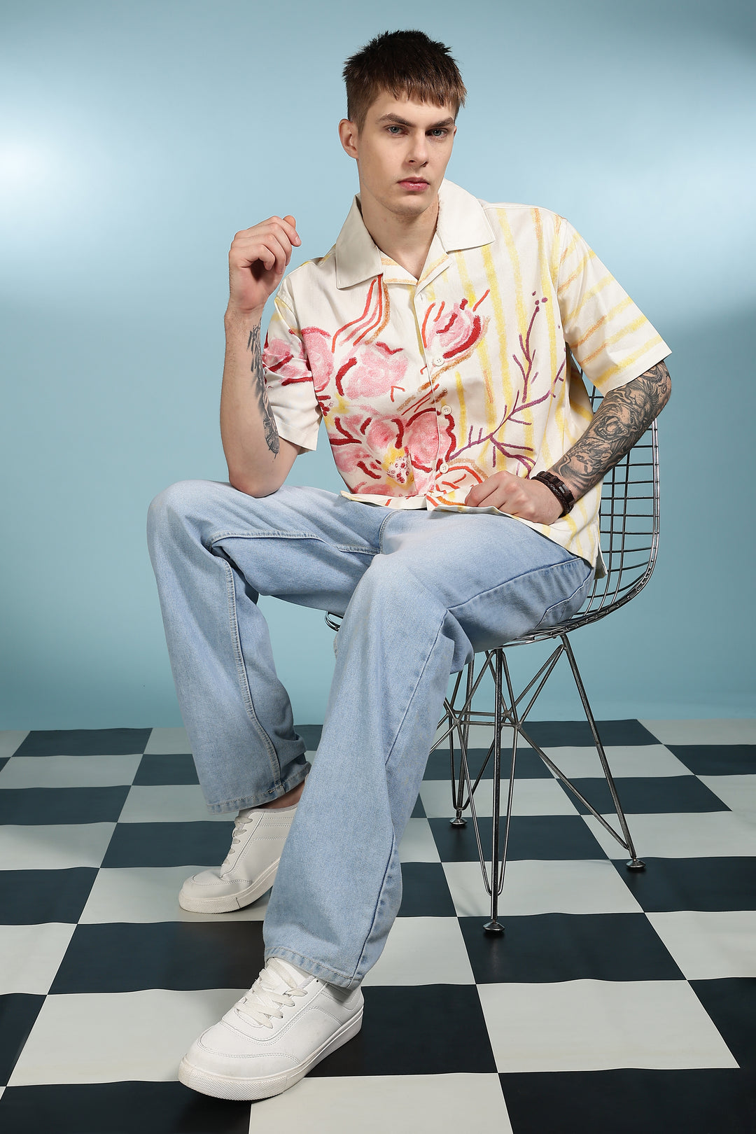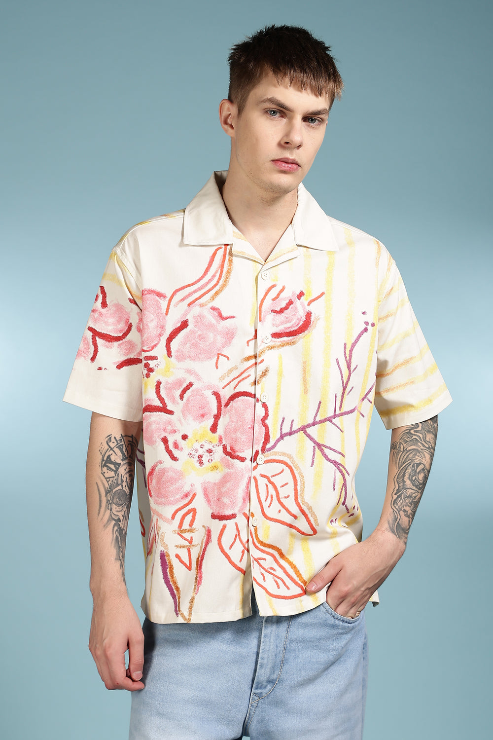 Crayon Flower Oversized Cuban Shirt
