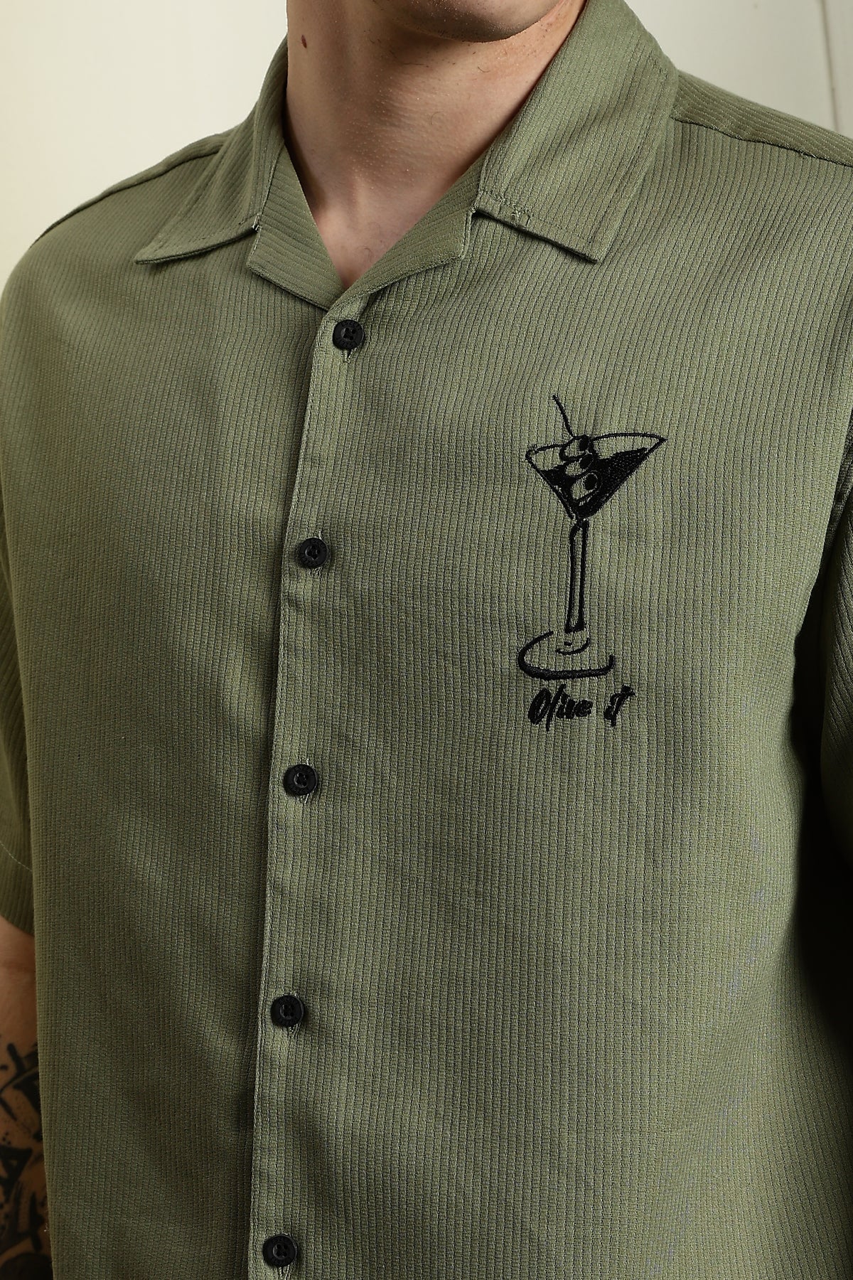Martini: Embroidery Boxy Fit Textured Fabric Shirt