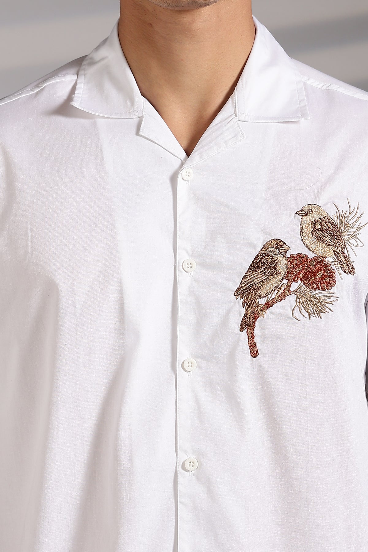 Sparrow: Embroidery White Cotton Cuban Shirt