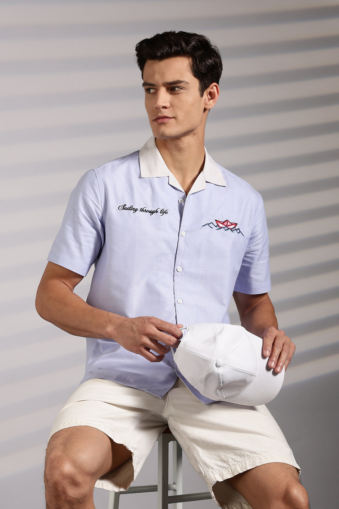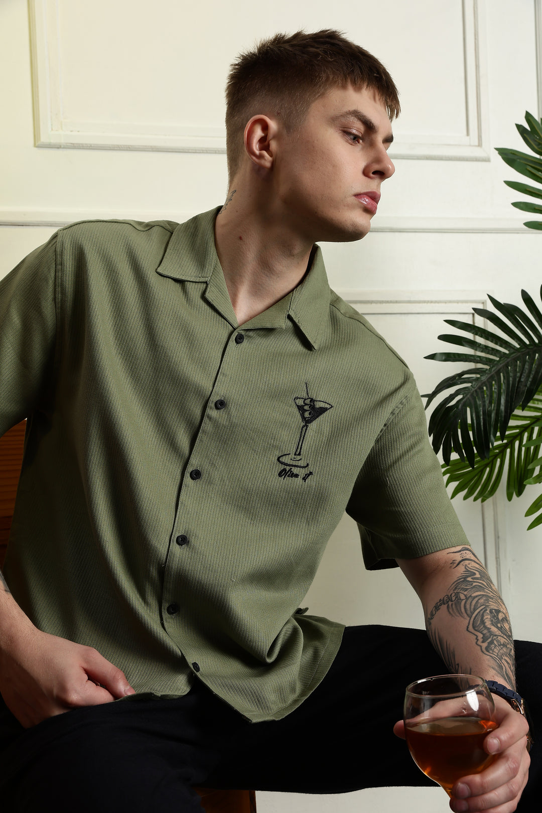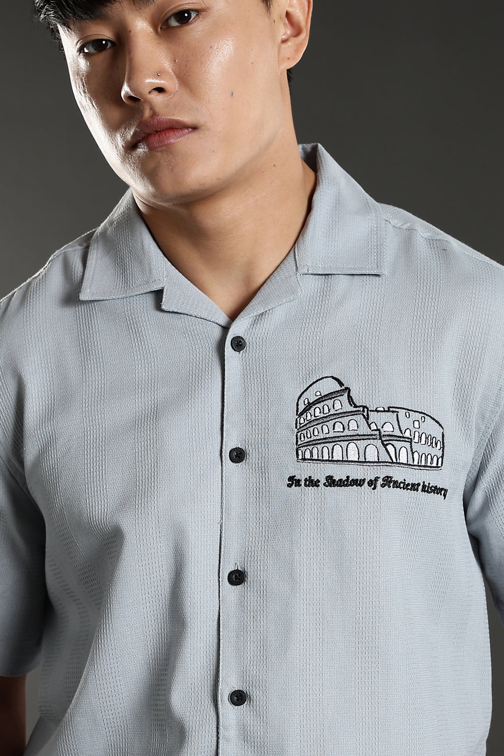 Martini: Embroidery Boxy Fit Textured Fabric Shirt