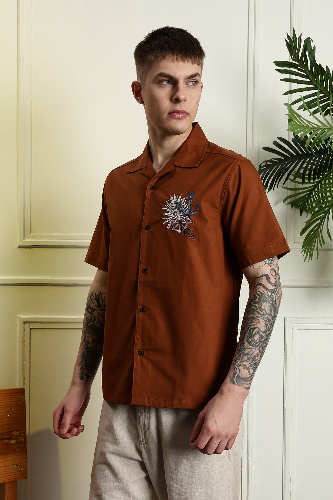Spice: Embroidery Textured Fabric Cuban Shirt