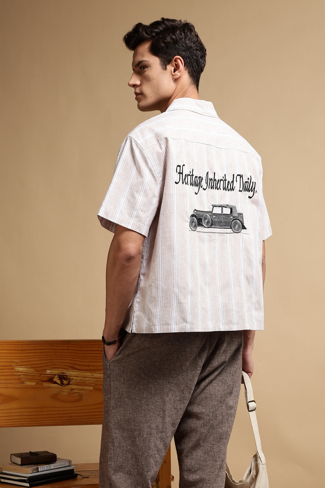 Boxy Fit: Heritage Embroidery Stripes Shirt