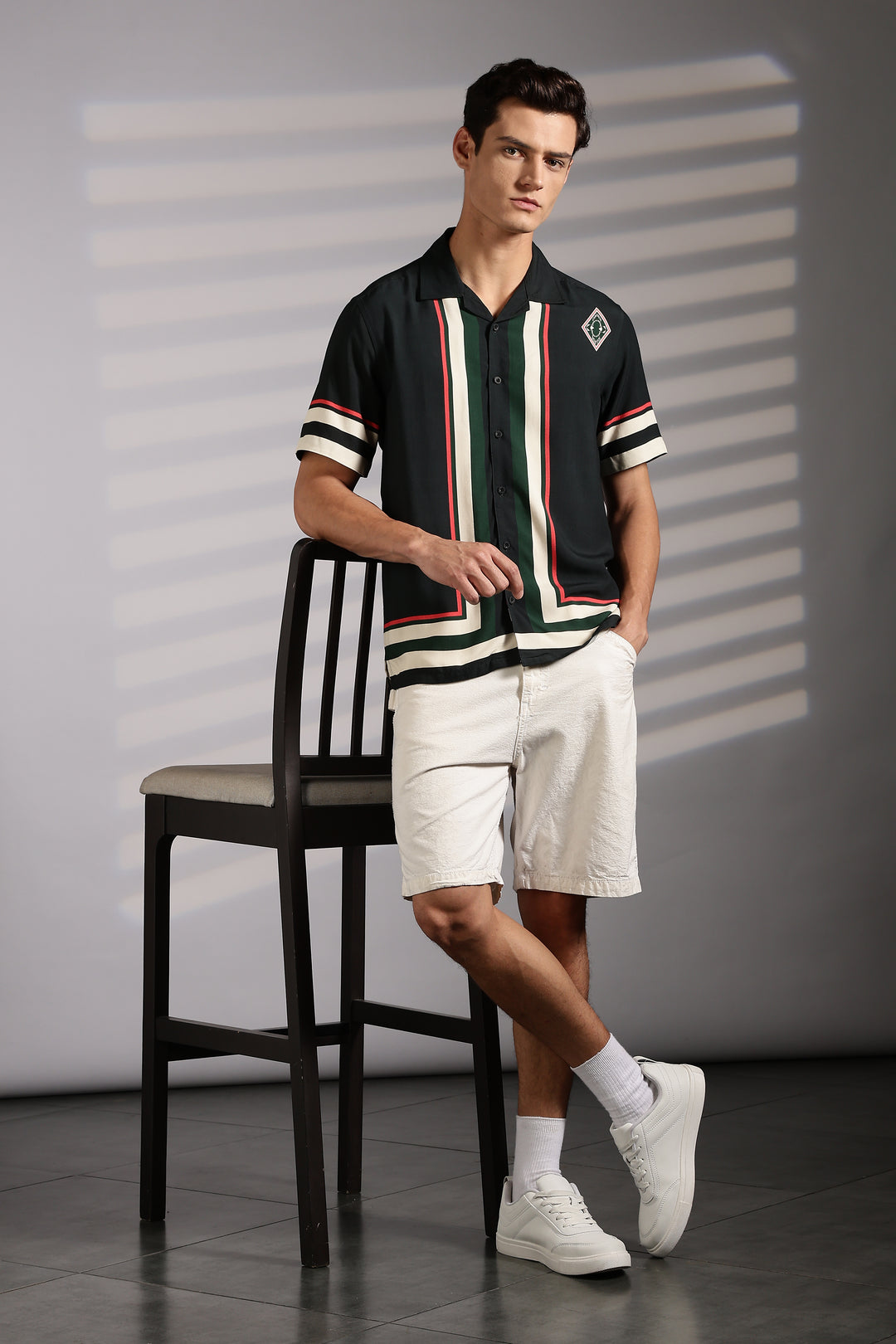 Textured Fabric: Sage Green Stripes Cuban Shirt