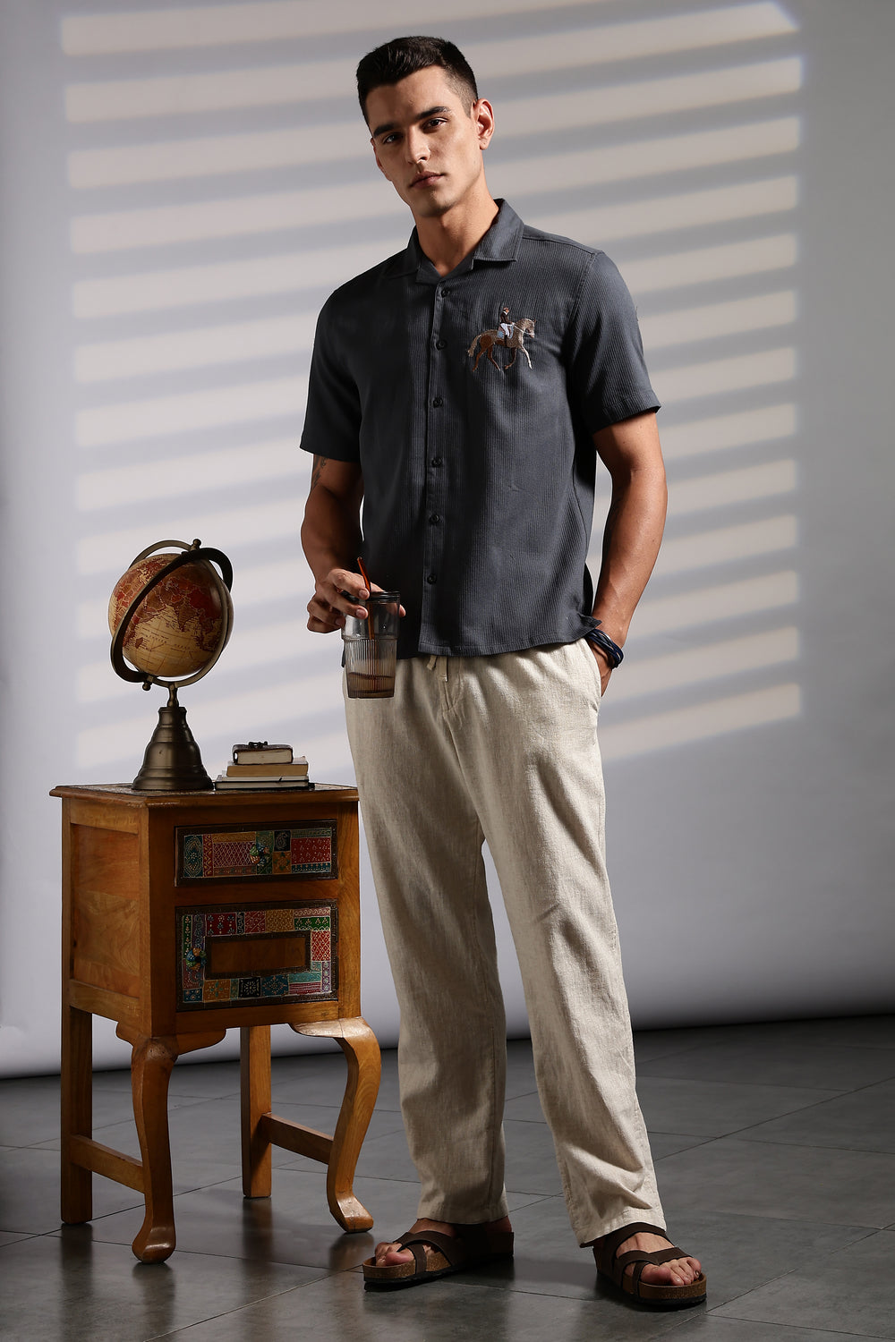 Textured Fabric: Stripes Dark Grey Cuban shirt