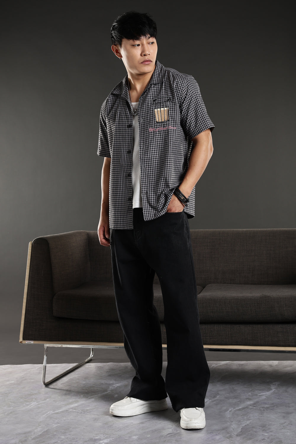 Paradise Forever: Black Checks Embroidery Cuban Shirt
