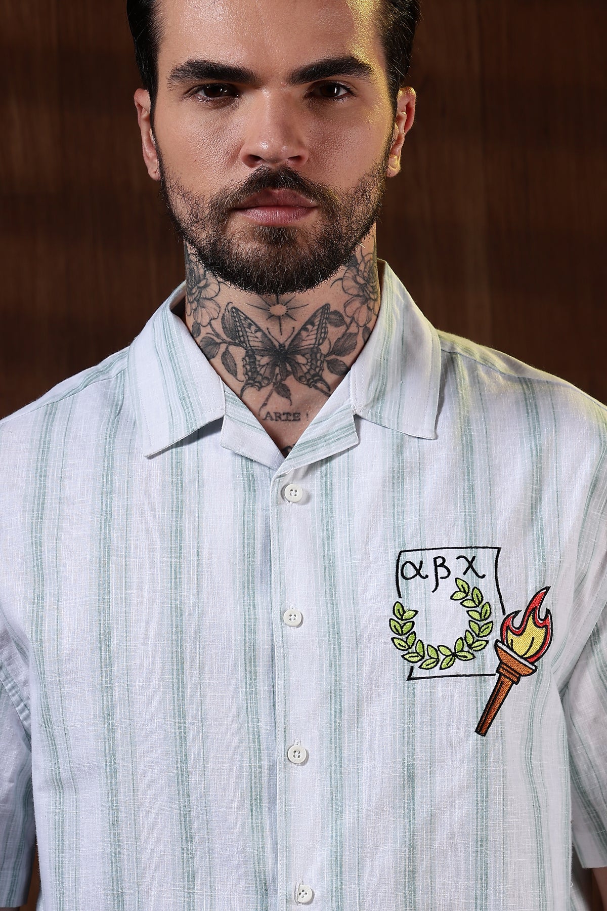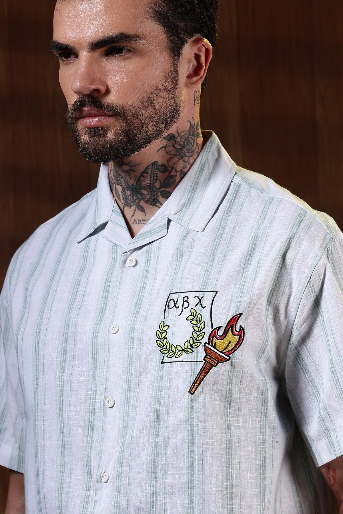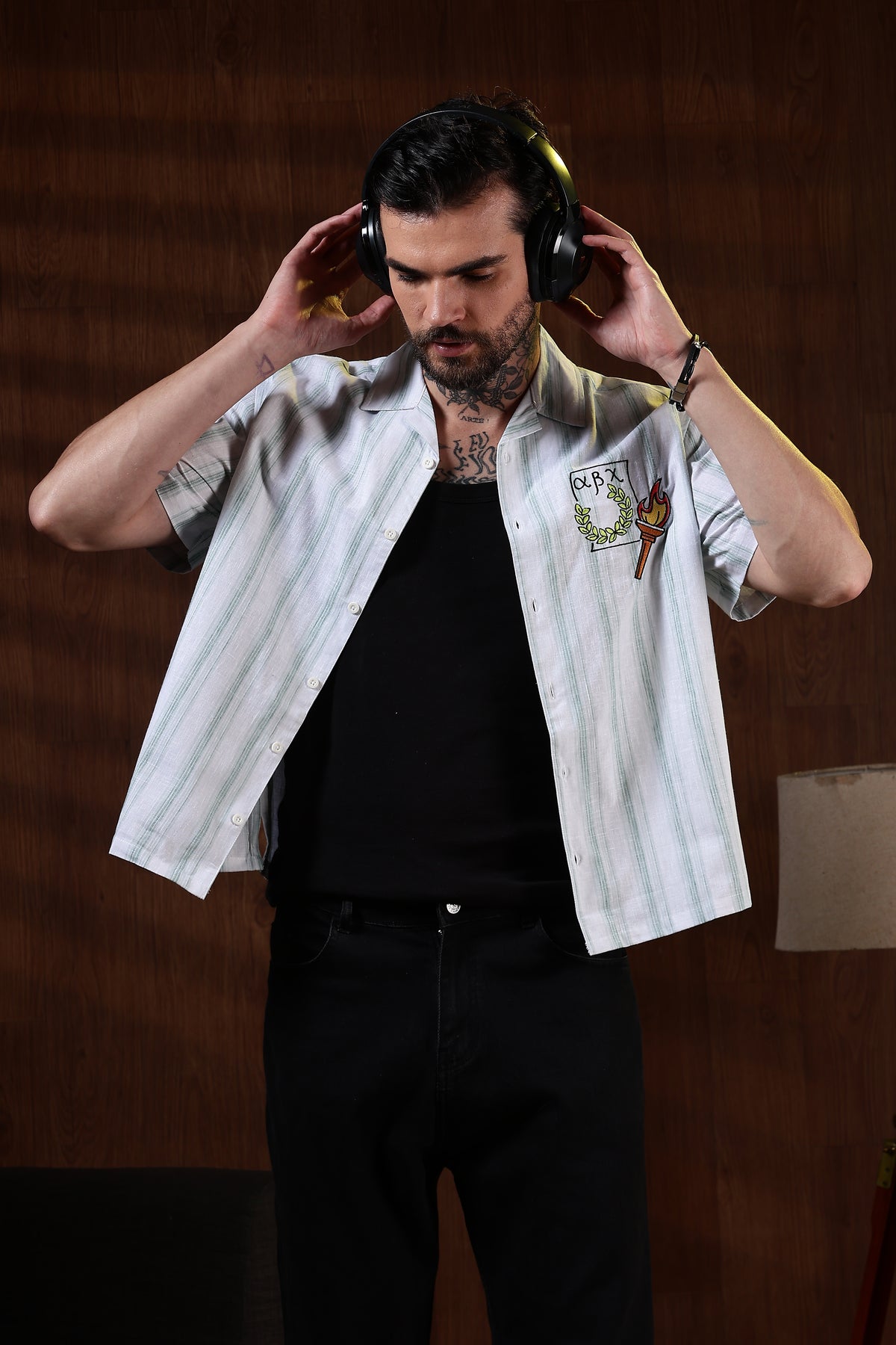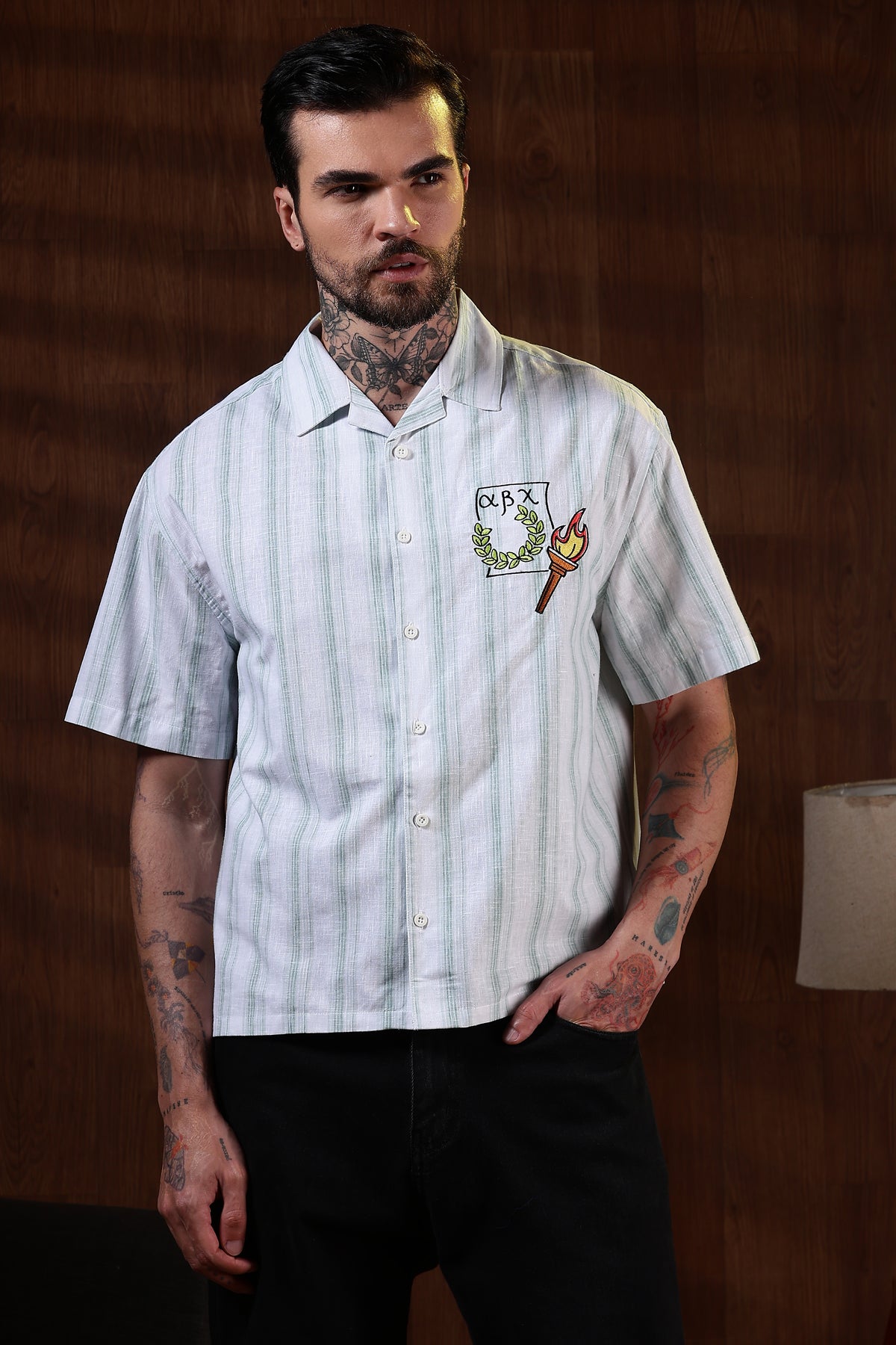 Greek Inspiration: Green Stripes Boxy Fit Cuban Shirt