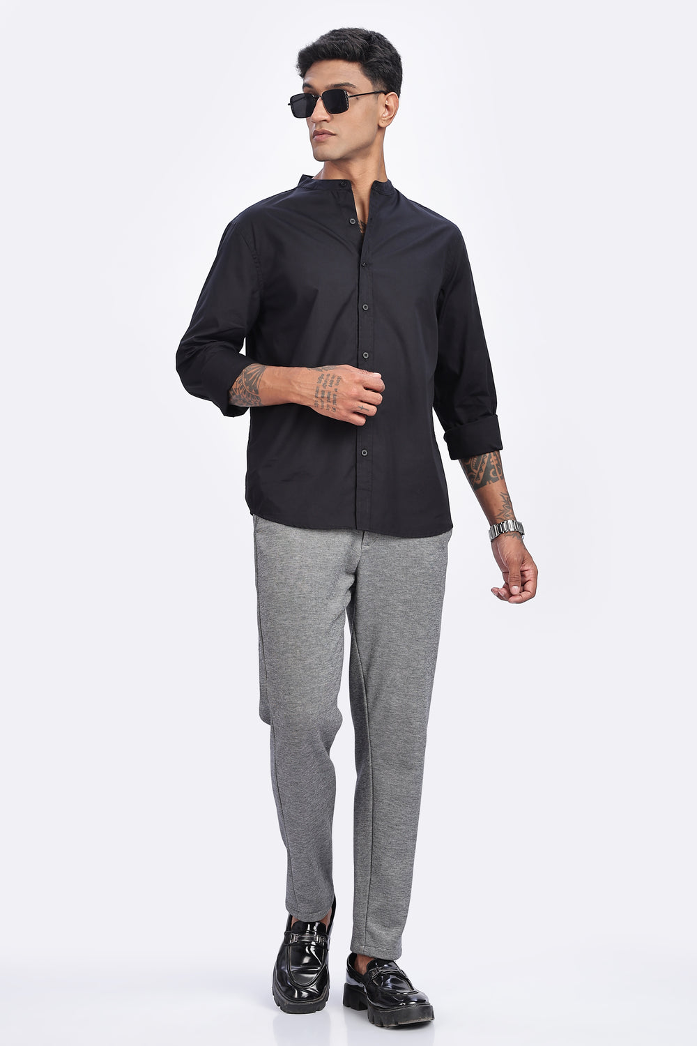 Featuring the distinctive Mandarin collar, these Black shirts exude a sense of understated luxury and cultural richness. The clean lines and tailored silhouette offer a contemporary twist to traditional design, making them a versatile addition to any wardrobe.