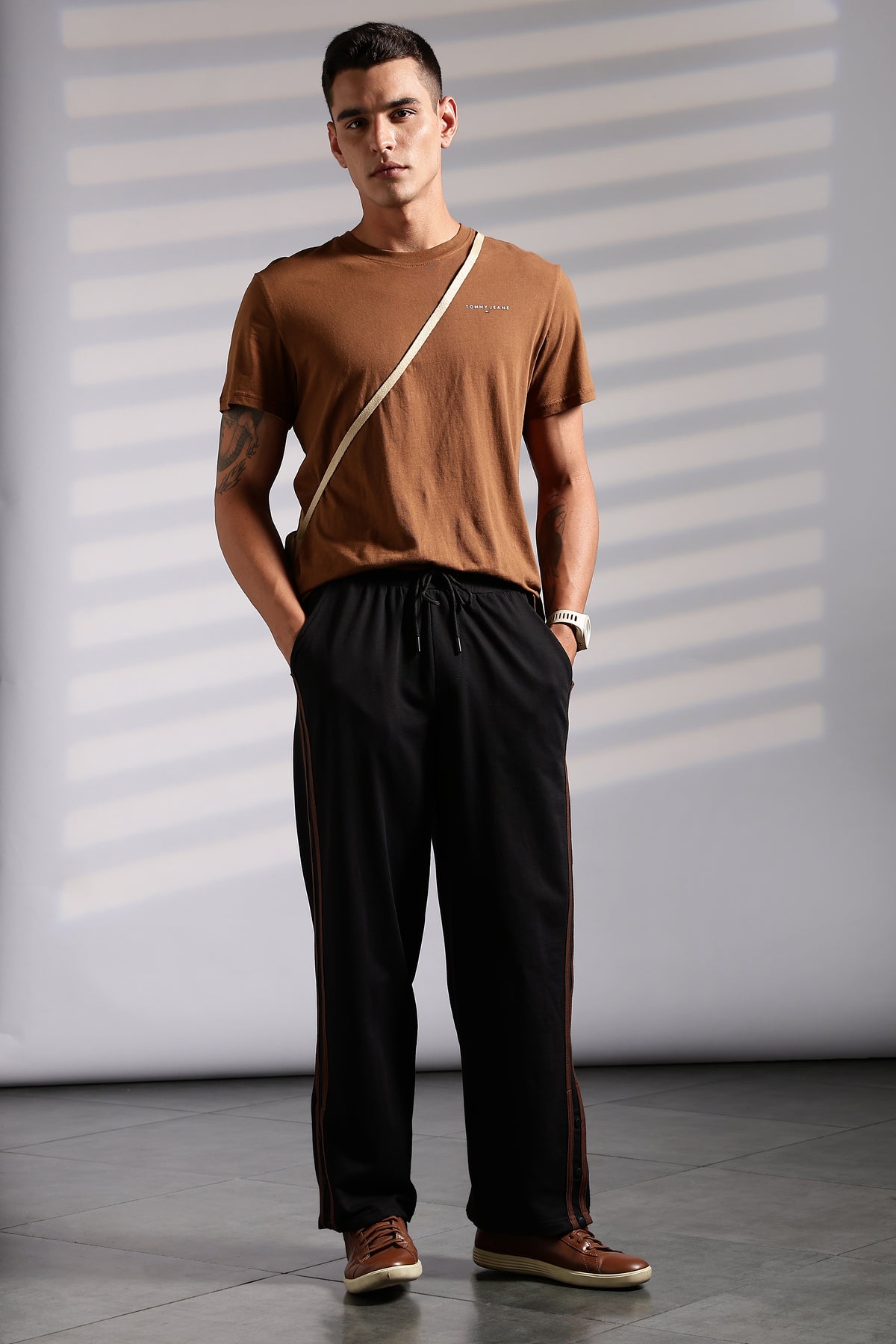 Brown Striped Joggers  are made from plain pattern, premiun fabric that offers just the right amount of comfort and structure. Designed to rest comfortably on the waist, they're cut from smoothing fabric for a good fit that gives it a super smart finishing touch.