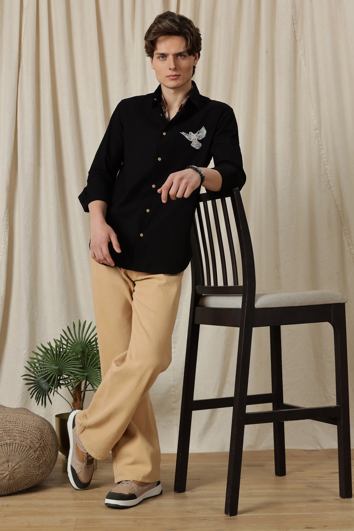 Introducing our Dove: Embroidery Linen Black Shirt – the epitome of timeless style, versatility, and comfort. Crafted with meticulous attention to detail, our Oxford Shirts are a wardrobe essential that seamlessly transitions from casual to semi-formal occasions.