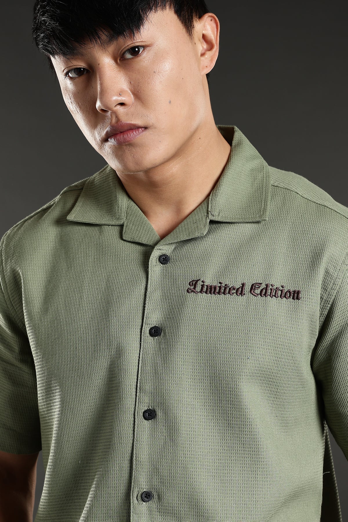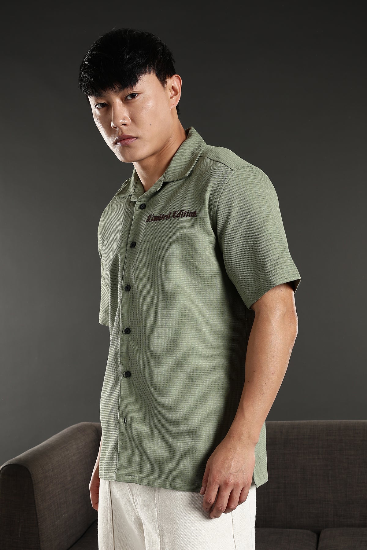 Limited Edition: Embroidery Sage Green Cotton Cuban Shirt