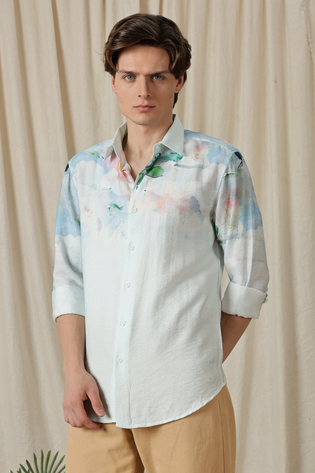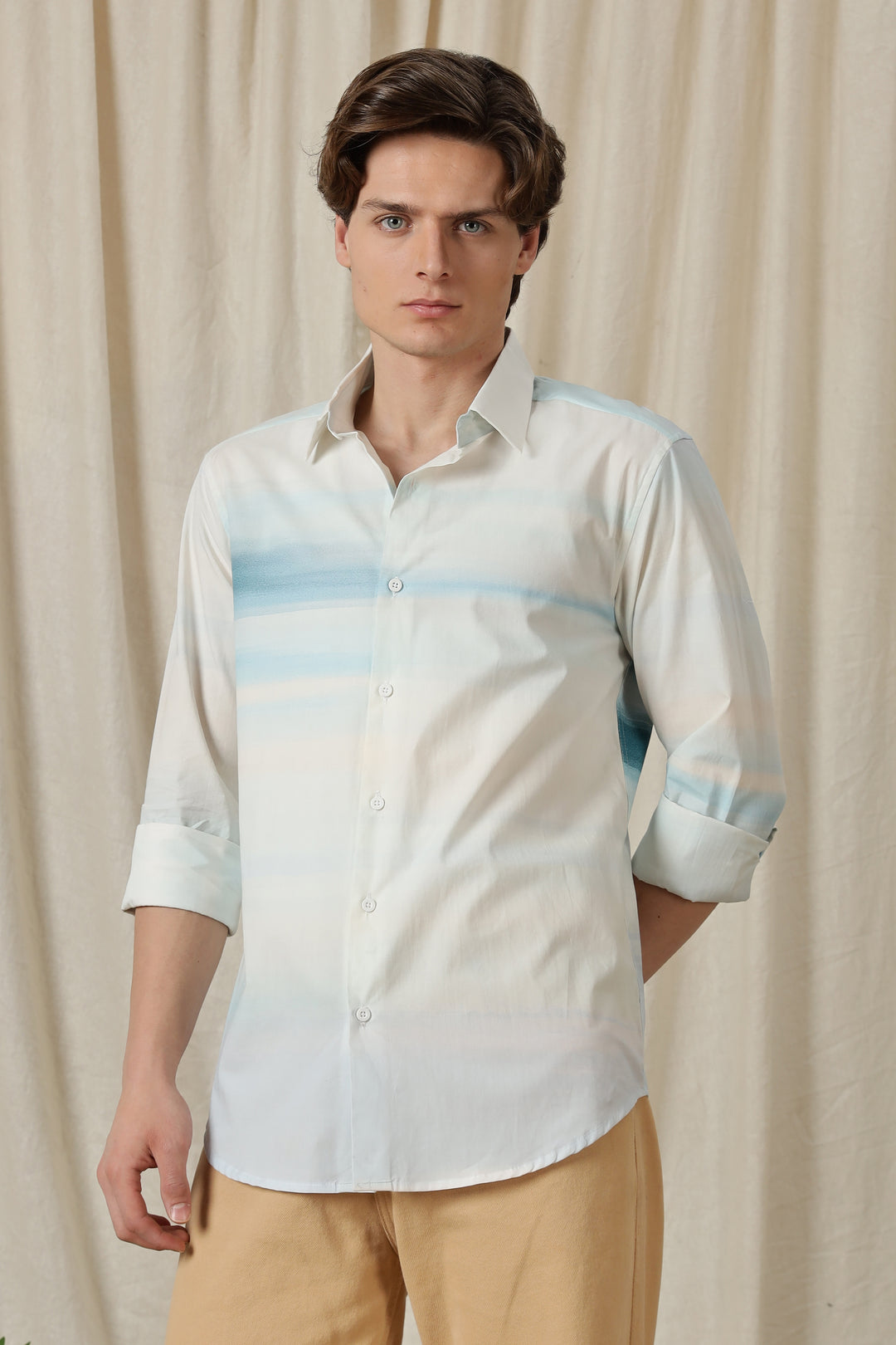 Pink Tulips: Embroidery Blue Stripes Shirt