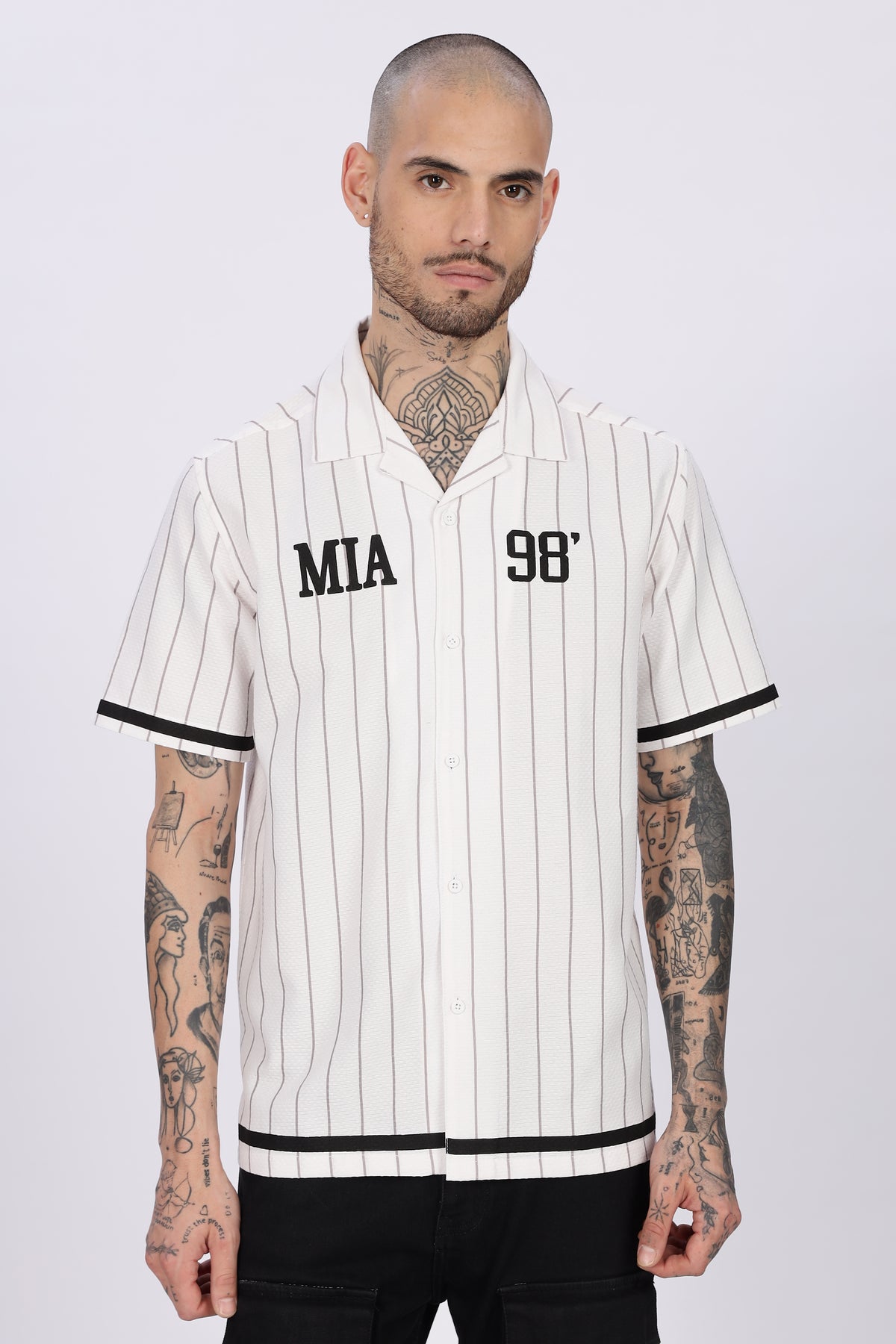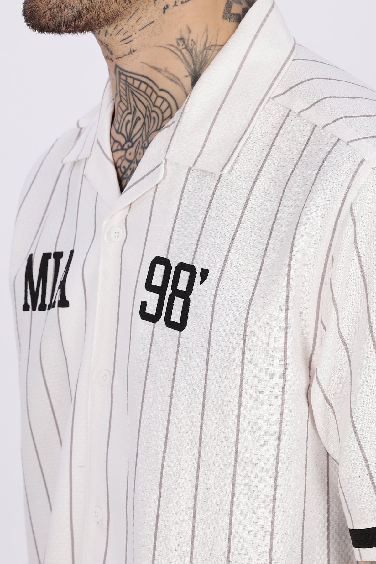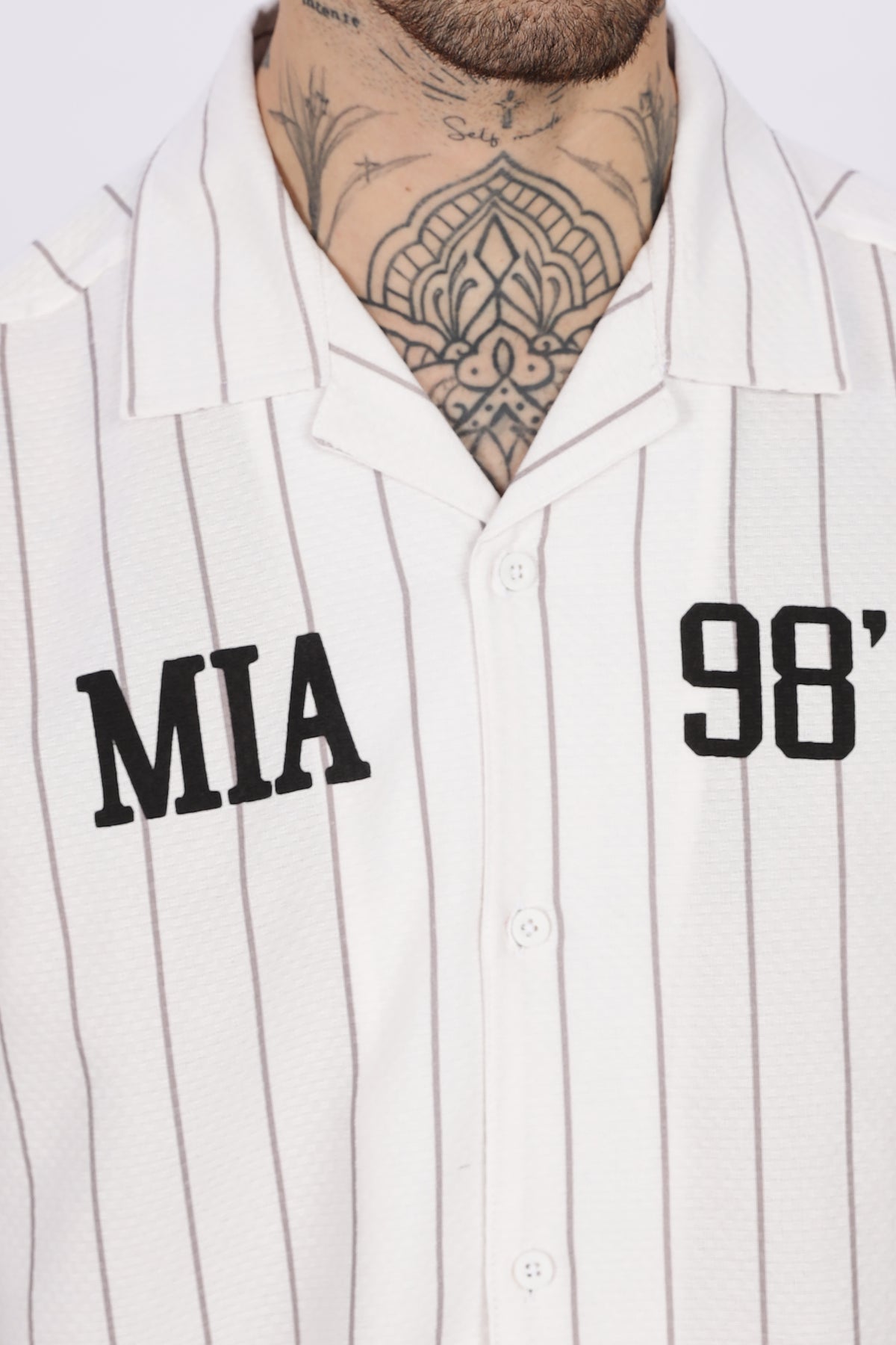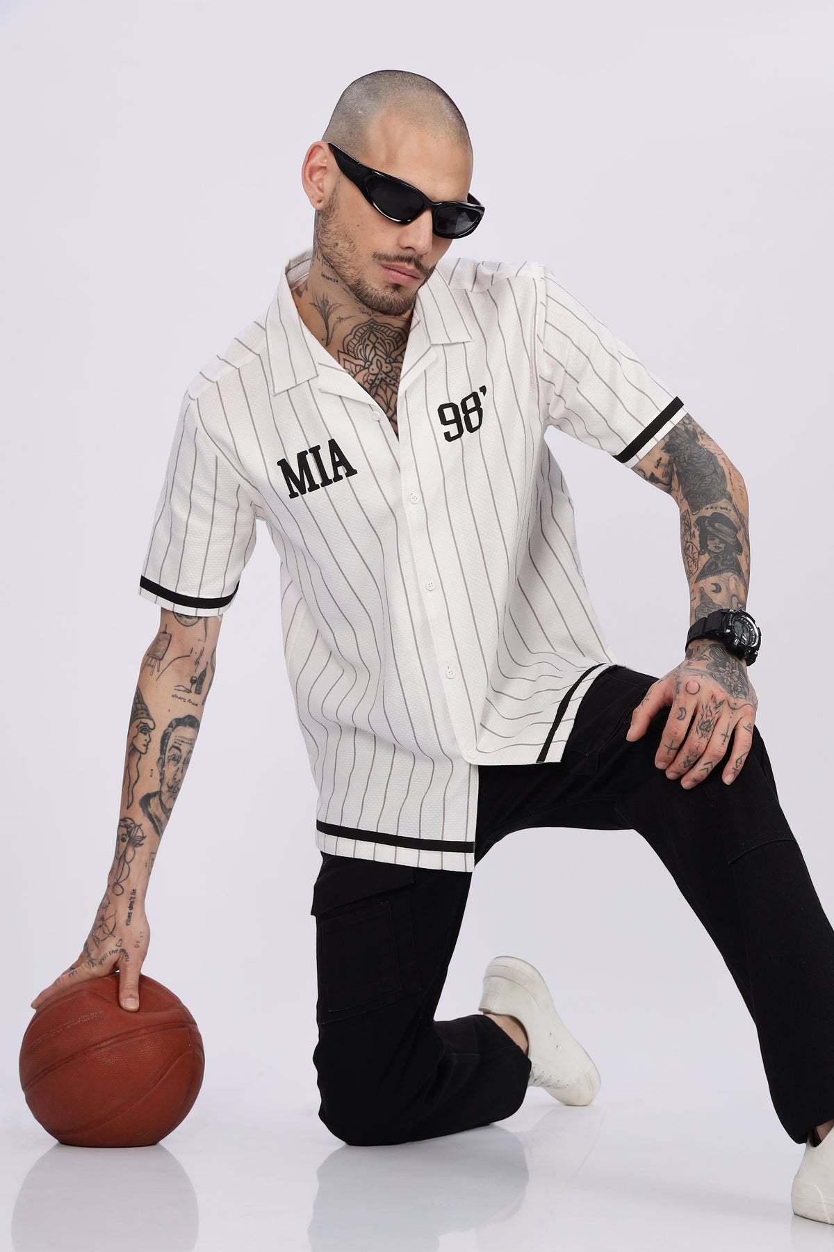 Introducing our Stripes White Oversized Shirt, where timeless elegance meets vibrant charm. Crafted with meticulous attention to detail, this shirt is a celebration of exquisite craftsmanship and tropical allure.