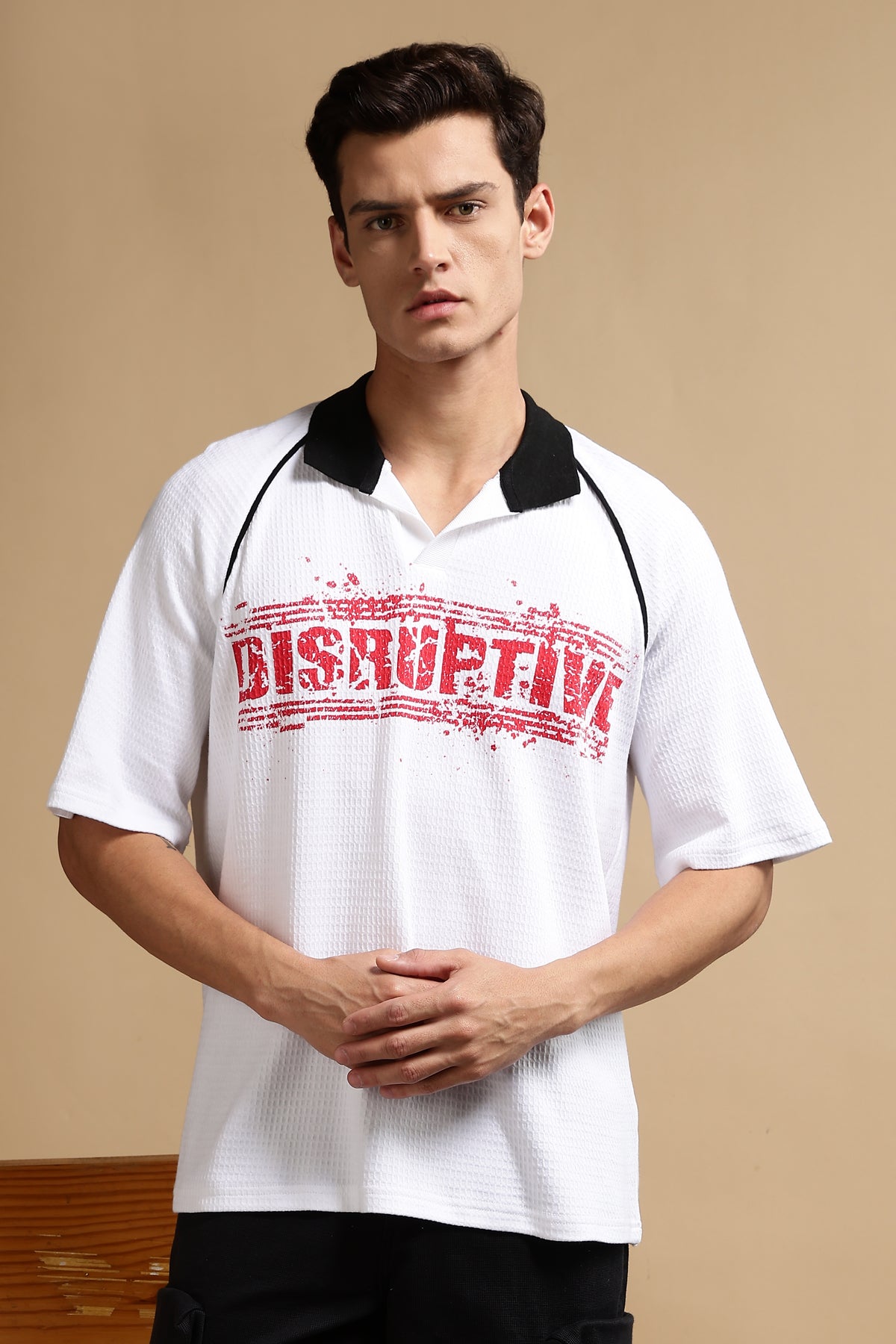 Elevate your everyday wardrobe with our Disruptive Textured Fabric white Oversized polo — where comfort meets contemporary style. Crafted from soft, breathable cotton-blend fabric, this relaxed-fit polo offers a clean silhouette with just the right amount of drape.