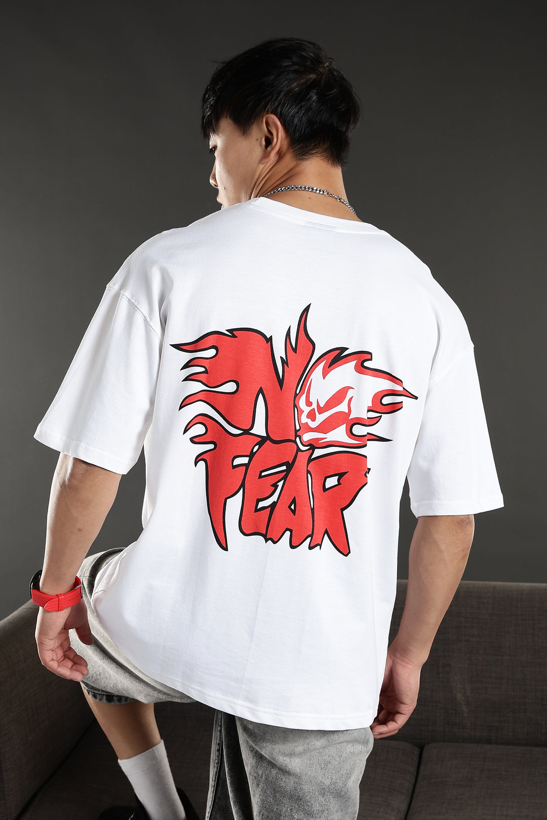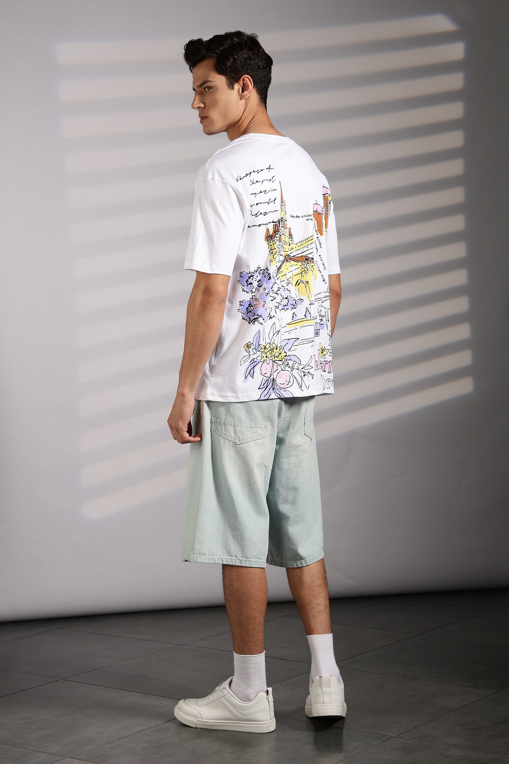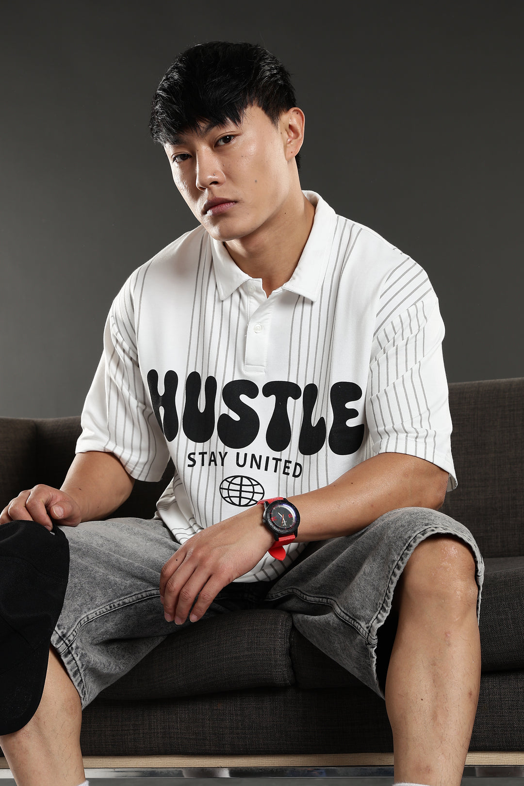Vintage Ride: Embroidered Cream Stripes Oversized T-shirt