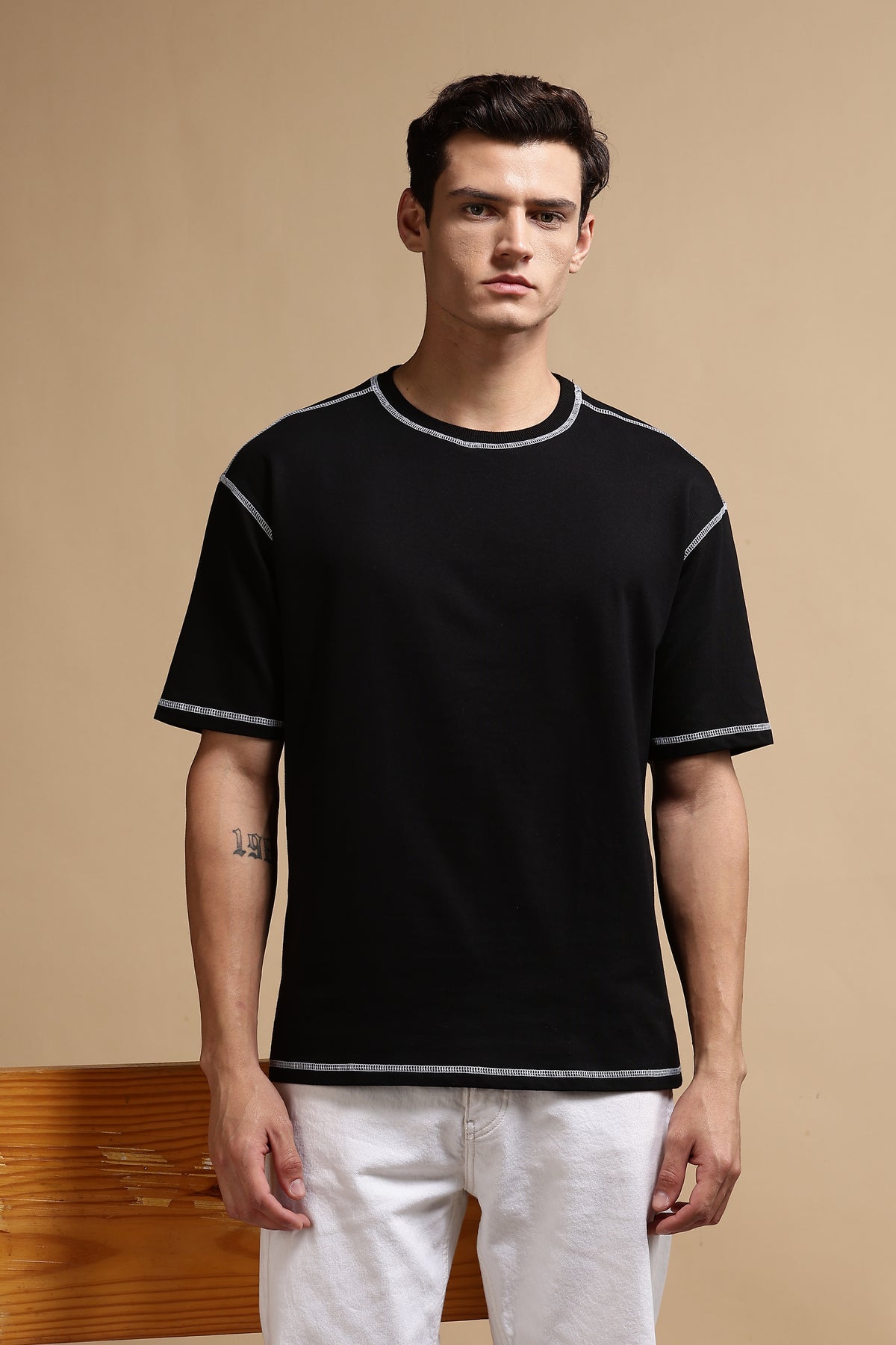 The Contrast Stitch Black Oversized T-shirt is the epitome of comfort and effortless style, offering a relaxed fit that's perfect for casual days and laid-back outings. Made from soft, breathable fabric such as cotton or a cotton blend, this T-shirt provides all-day comfort and ease of movement. Its loose silhouette drapes comfortably over the body, creating a laid-back aesthetic that pairs well with jeans, leggings, or shorts.