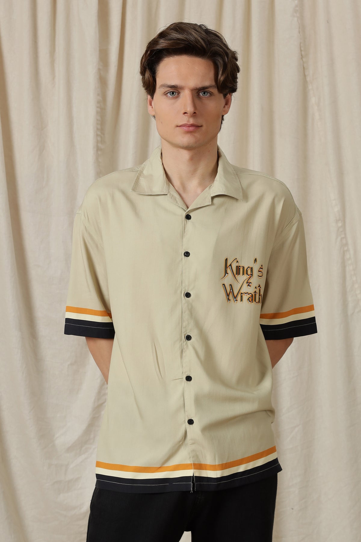 introducing our King Wrath: Beige Oversized Shirt – the epitome of timeless style, versatility, and comfort. Crafted with meticulous attention to detail, our Oxford Shirts are a wardrobe essential that seamlessly transitions from casual to semi-formal occasions.