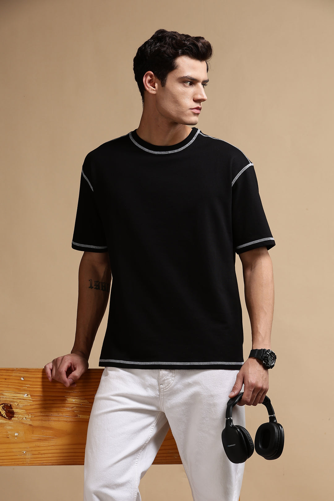 Contrast Stitch Black Oversized T-shirt