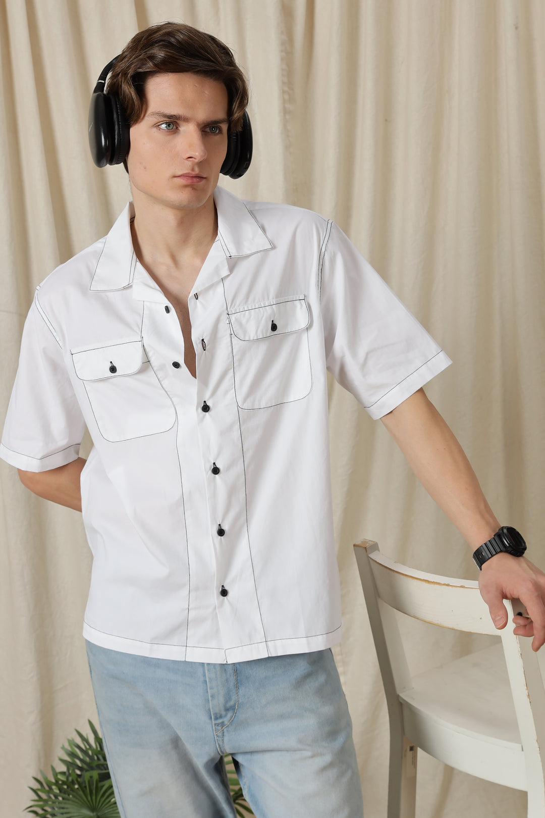 Contrasting Thread: White Oversized Shirt