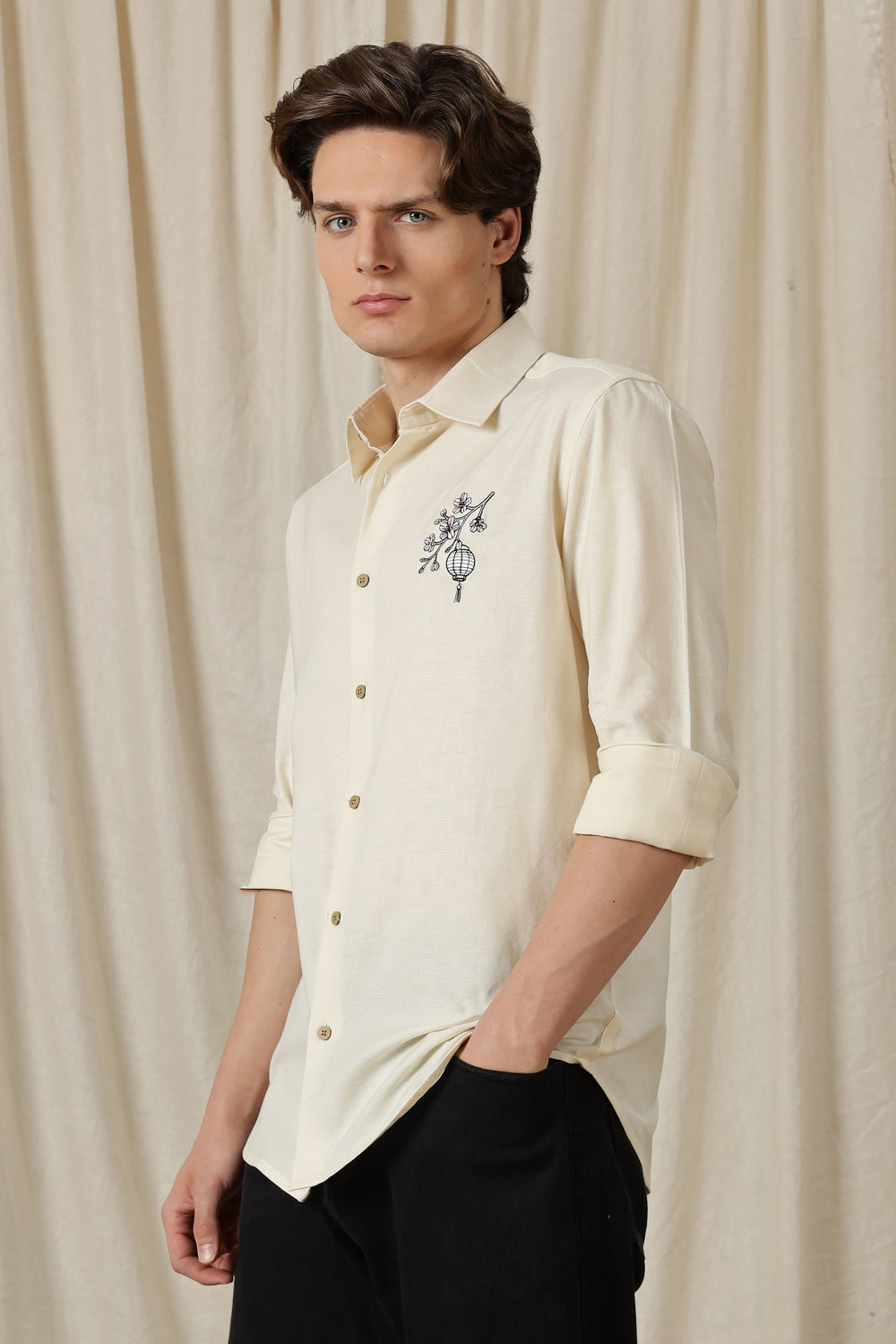 Japanese Lantern: Embroidery Linen Cream Shirt