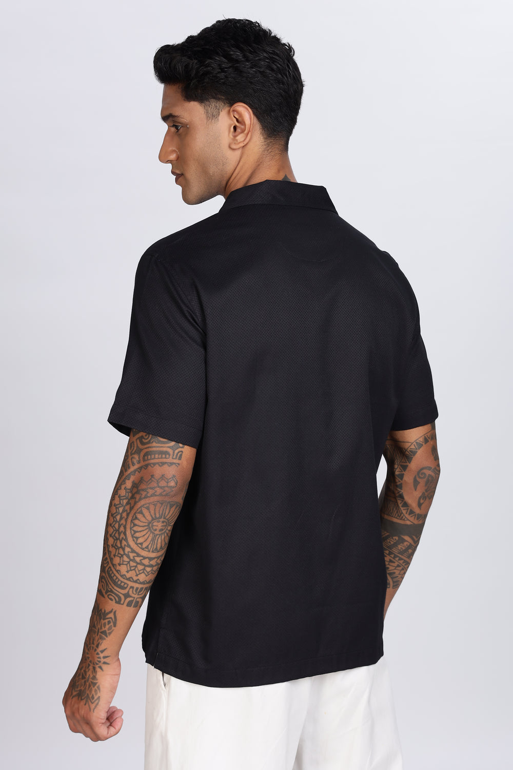 Introducing the Black Dobby Cuban Shirt, a modern and stylish take on the classic Cuban shirt. Crafted from high-quality dobby fabric, this shirt features a unique textured weave that adds depth and character to its sleek black appearance. The dobby weave provides a subtle yet distinctive pattern, making this shirt a standout piece in your wardrobe.