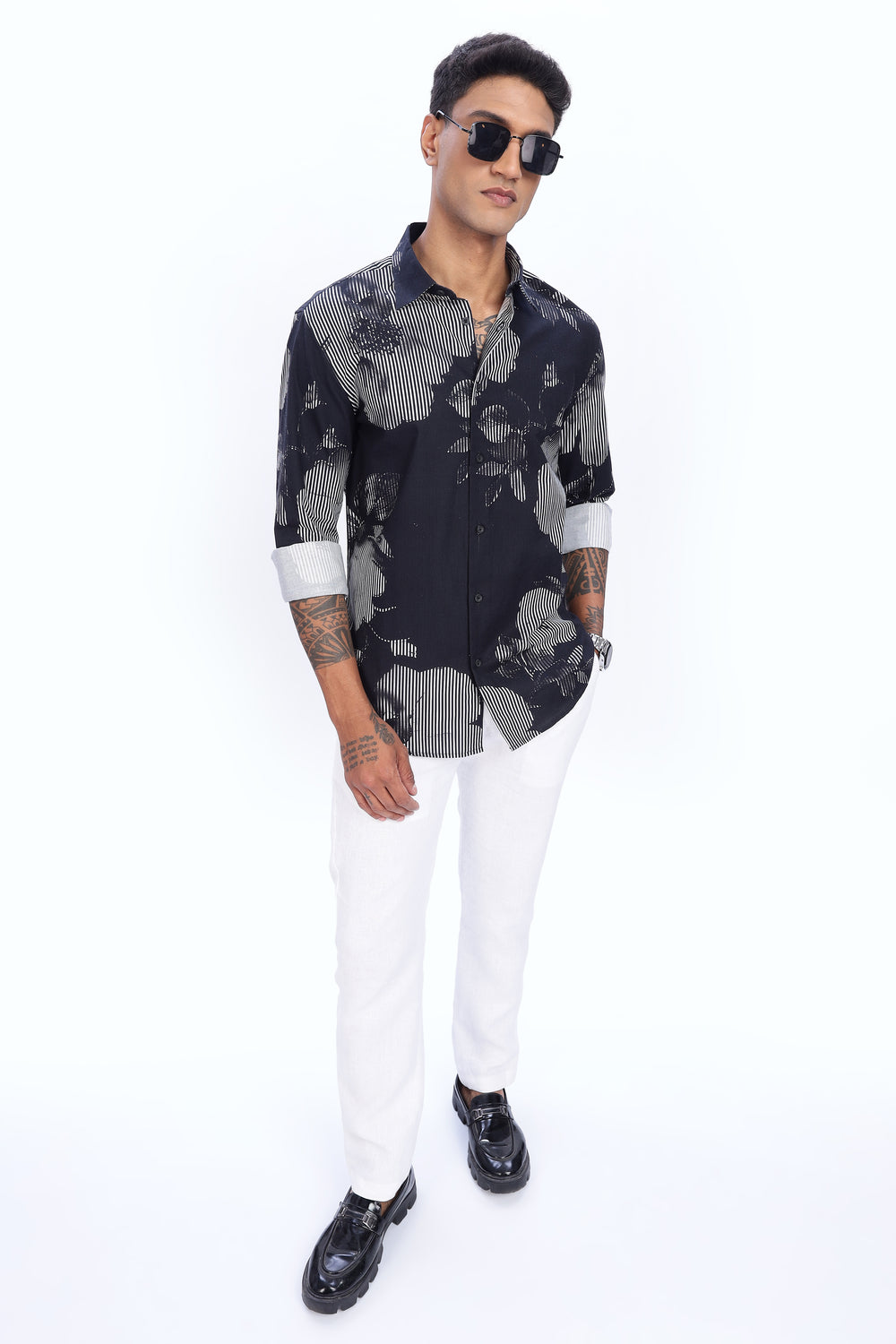 Introducing our Black Floral Stripes Shirt – a versatile and sophisticated addition to your wardrobe that combines timeless style with comfort. Crafted from high-quality twill fabric, this shirt offers a refined look suitable for various occasions.