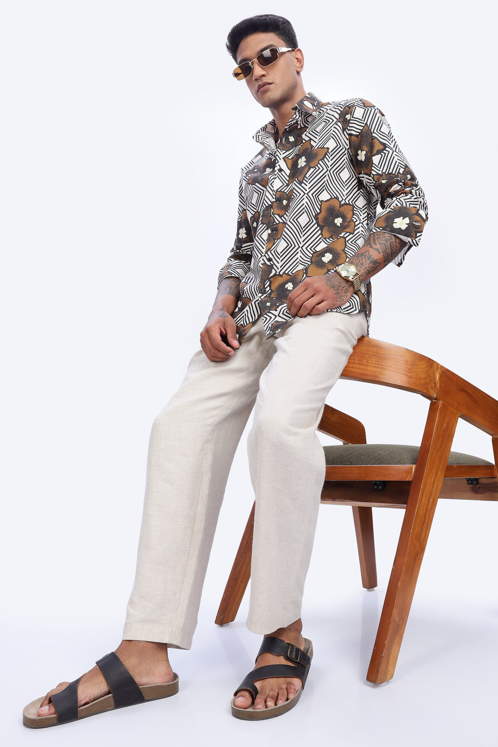 Introducing our Brown Diamond floral Shirt – a perfect fusion of casual comfort and timeless style. Crafted from high-quality linen fabric and adorned with classic blue stripes, this shirt offers a breezy, relaxed feel while maintaining a polished and versatile look.