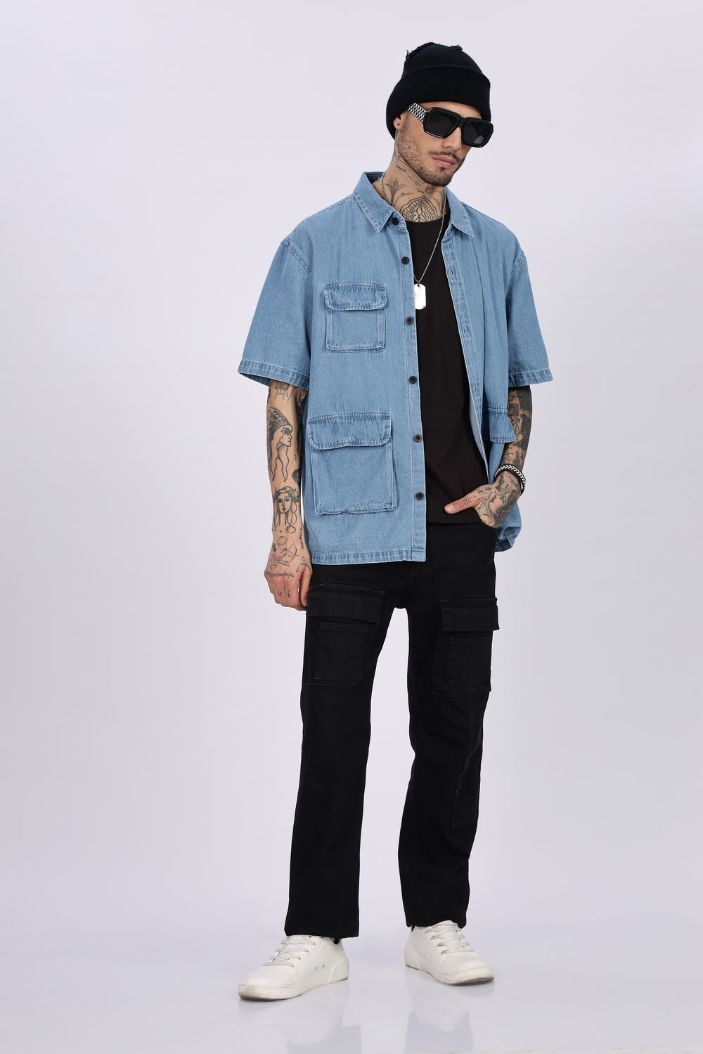 Introducing our Denims: Ice Utility Oversized Shirt where timeless elegance meets vibrant charm. Crafted with meticulous attention to detail, this shirt is a celebration of exquisite craftsmanship and tropical allure.