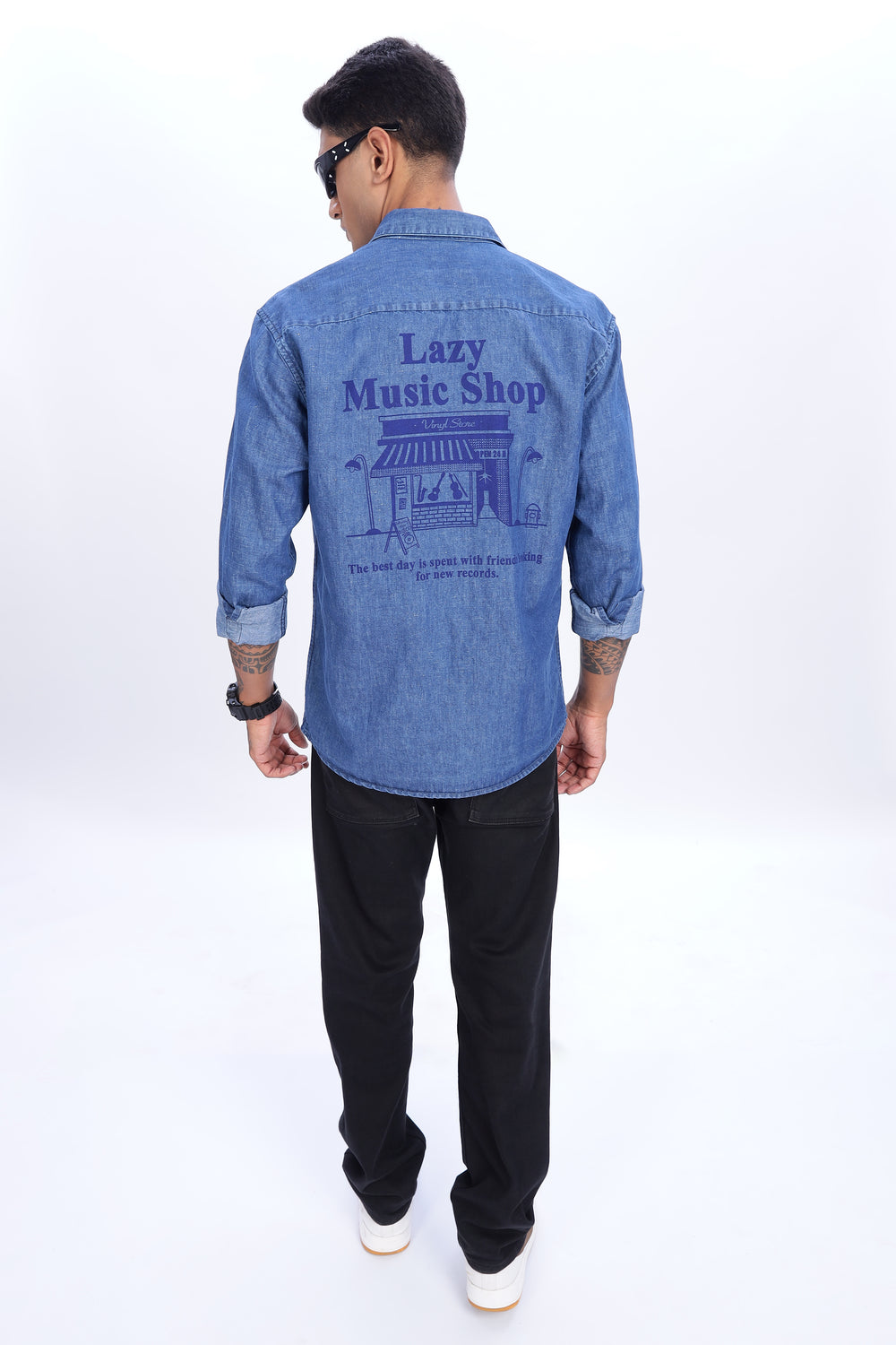 Introducing our Denims: Lazy Music Shop Shirt – a versatile and sophisticated addition to your wardrobe that combines timeless style with comfort. Crafted from high-quality twill fabric, this shirt offers a refined look suitable for various occasions.