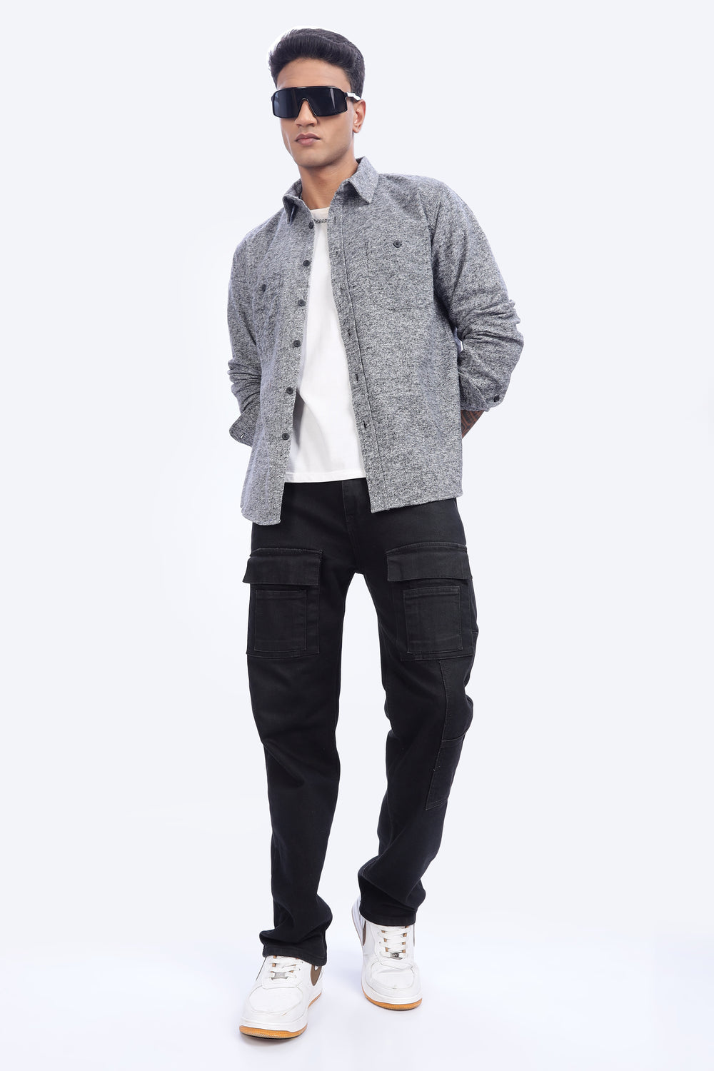 Introducing our Grey Flannel Shirt – a wardrobe essential that seamlessly combines style, comfort, and versatility. Crafted with precision and attention to detail, this shirt is designed to elevate your casual wardrobe with its timeless pattern and modern appeal.