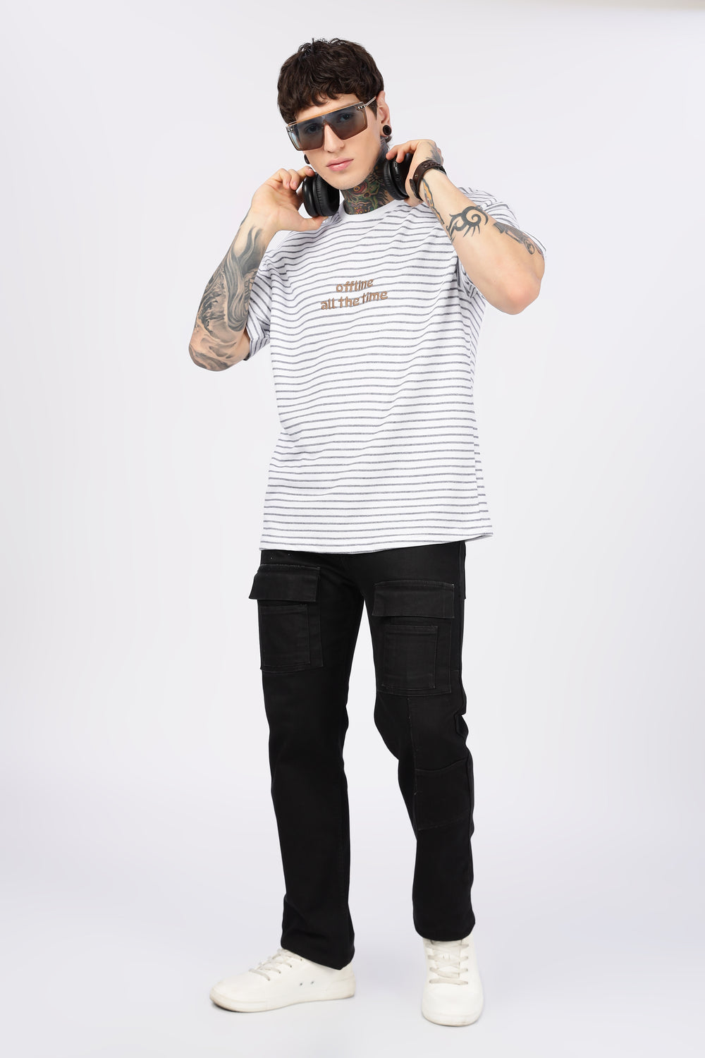 The Offline: White Stripes Oversized T-shirt is the epitome of comfort and effortless style, offering a relaxed fit that's perfect for casual days and laid-back outings. Made from soft, breathable fabric such as cotton or a cotton blend, this T-shirt provides all-day comfort and ease of movement. Its loose silhouette drapes comfortably over the body, creating a laid-back aesthetic that pairs well with jeans, leggings, or shorts.