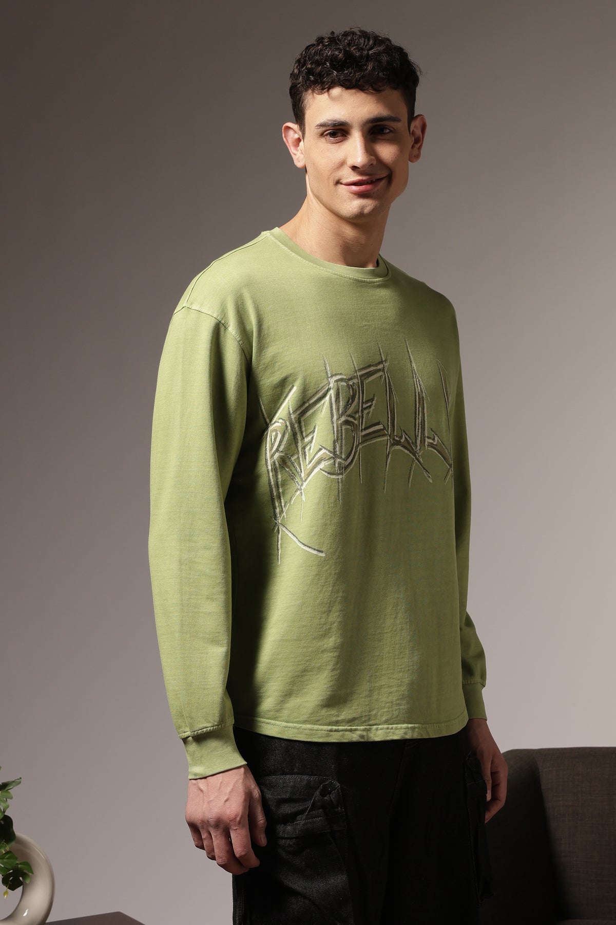 Introducing our Rebellious: Green Oversized T-shirt – the epitome of comfort, style, and a relaxed aesthetic. Crafted with a focus on laid-back elegance, this T-shirt combines the ease of a classic tee with an oversized fit for a contemporary and fashionable look.