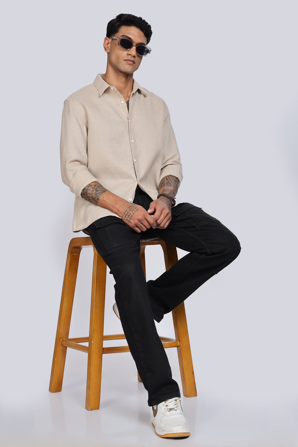 Introducing our Solids: Beige Textured Fabric shirt – the epitome of timeless style, versatility, and comfort. Crafted with meticulous attention to detail, our Oxford Shirts are a wardrobe essential that seamlessly transitions from casual to semi-formal occasions.