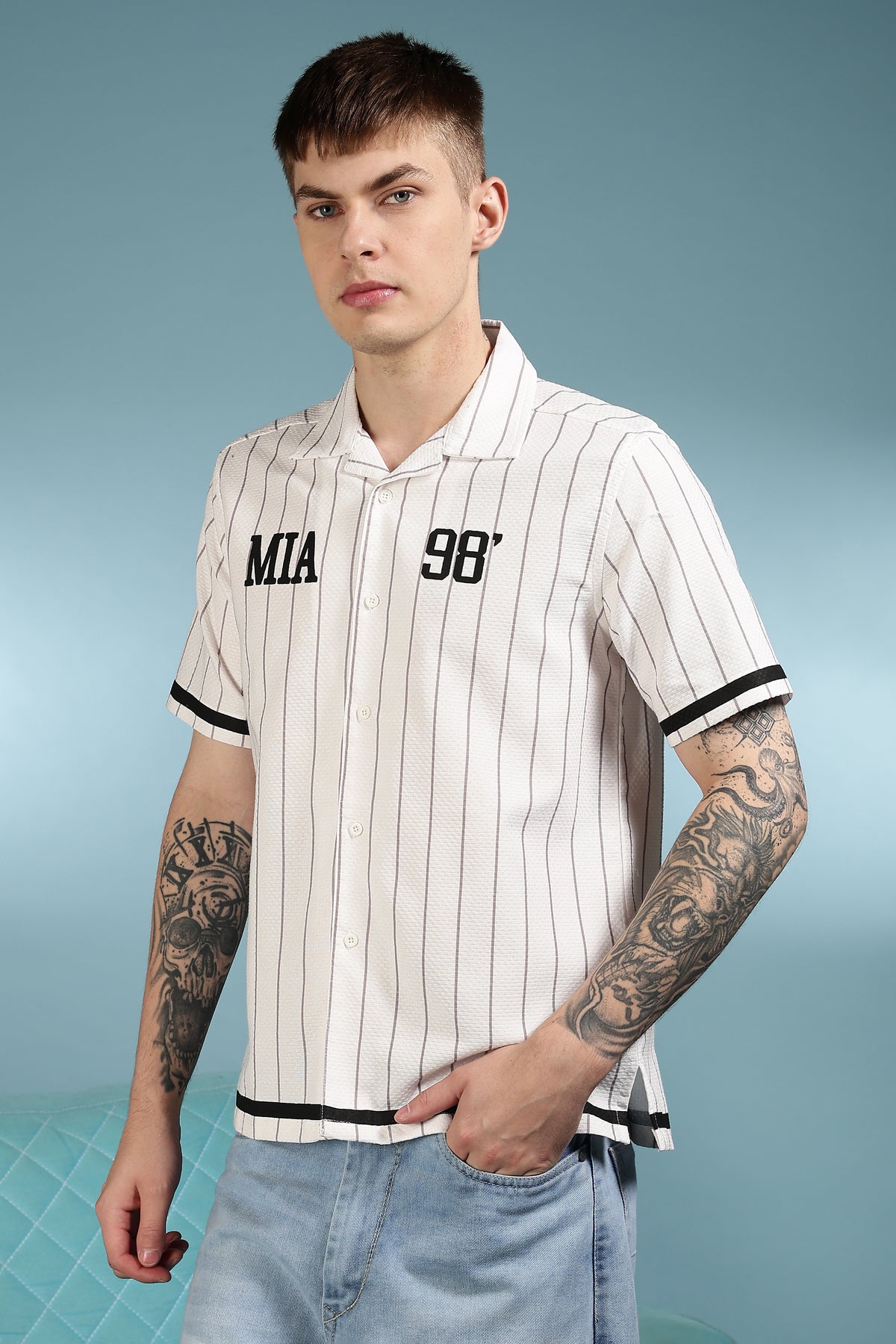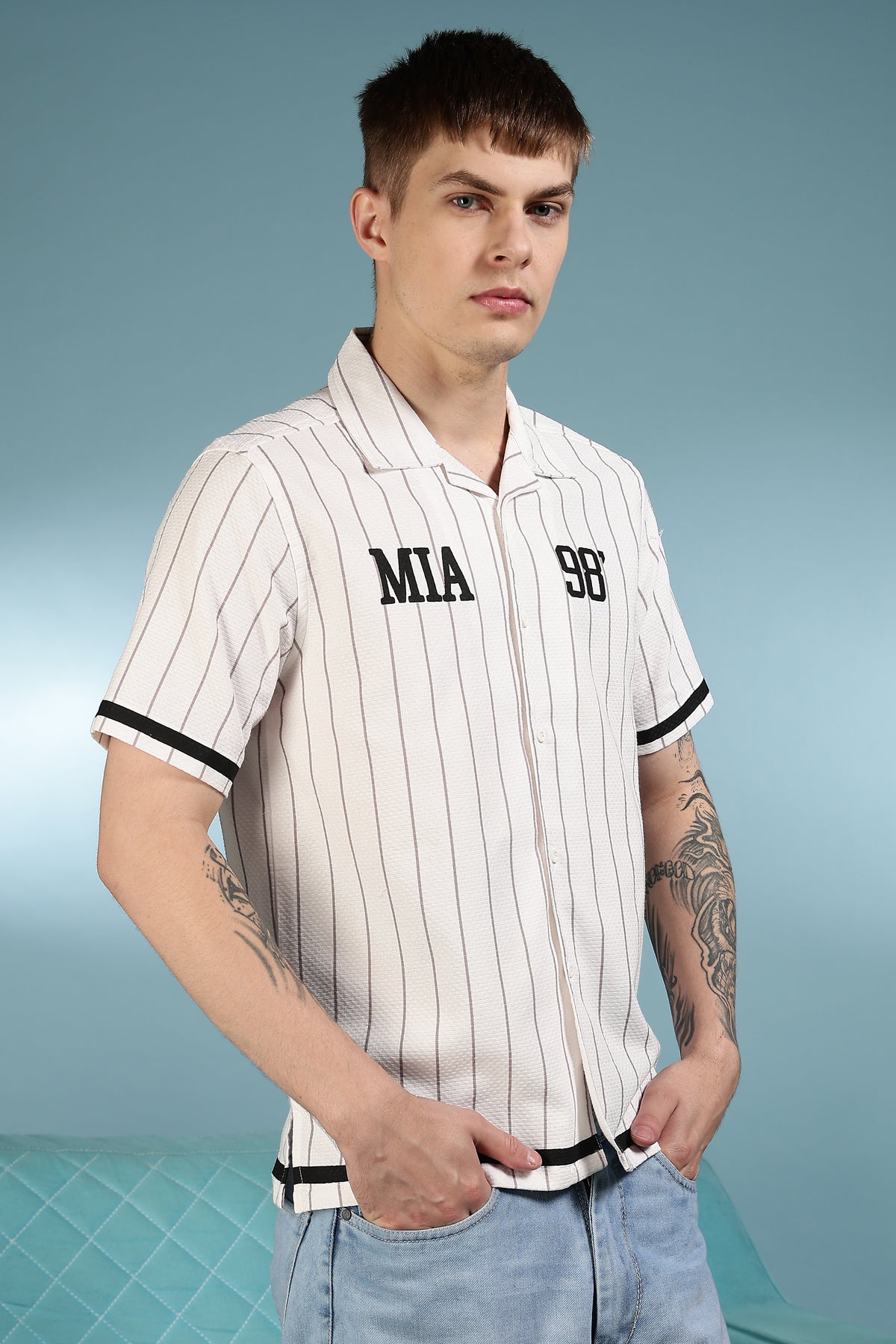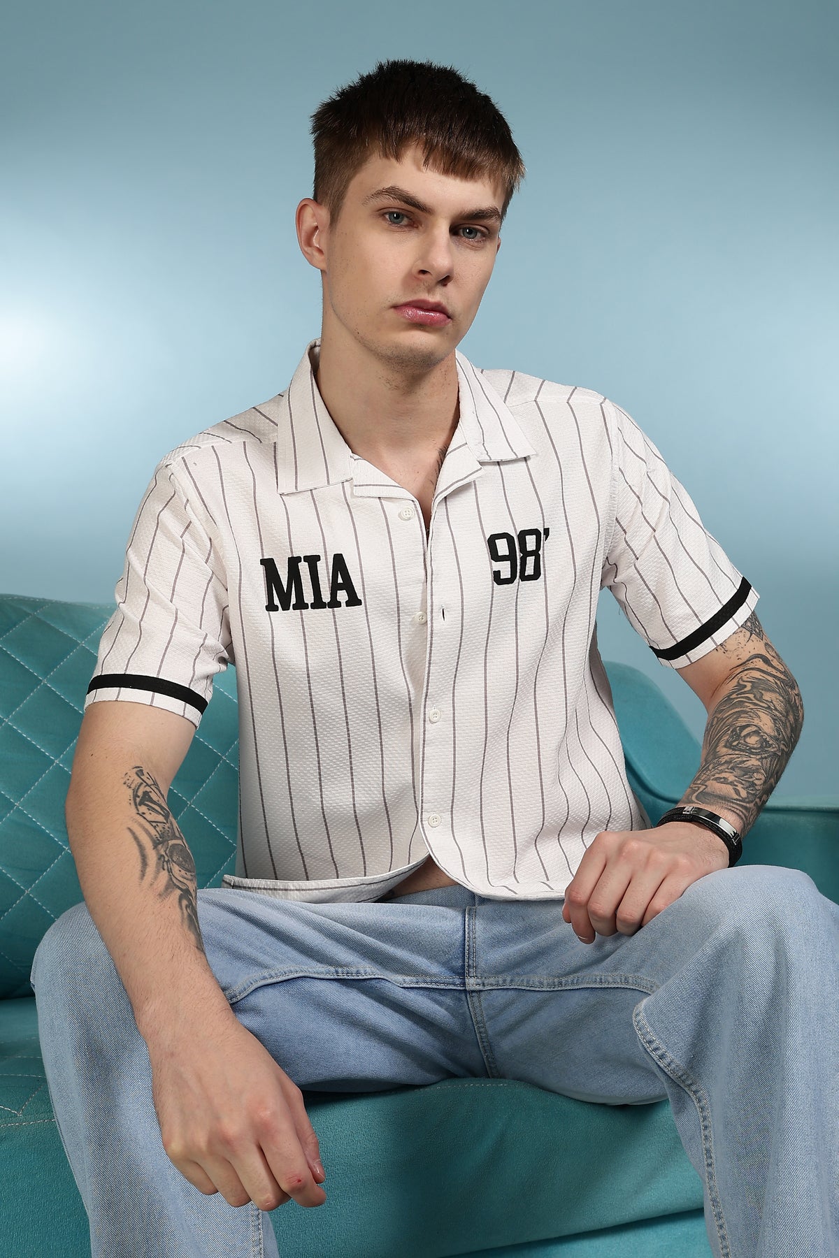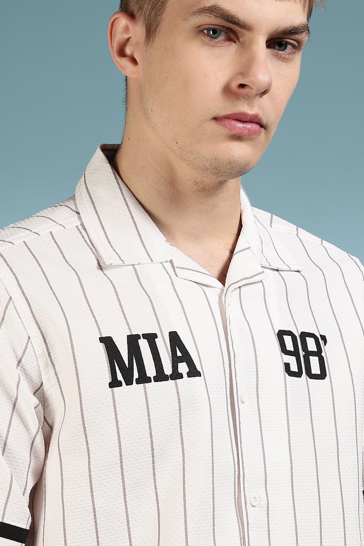Introducing our Stripes White Oversized Shirt, where timeless elegance meets vibrant charm. Crafted with meticulous attention to detail, this shirt is a celebration of exquisite craftsmanship and tropical allure.