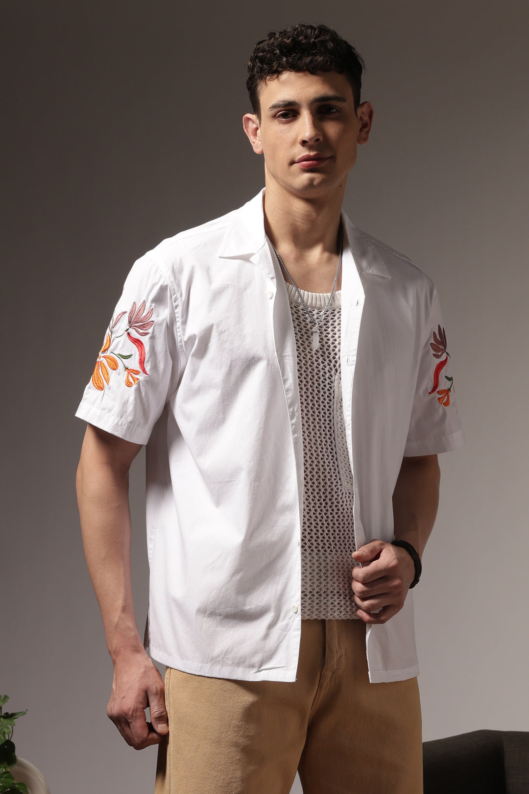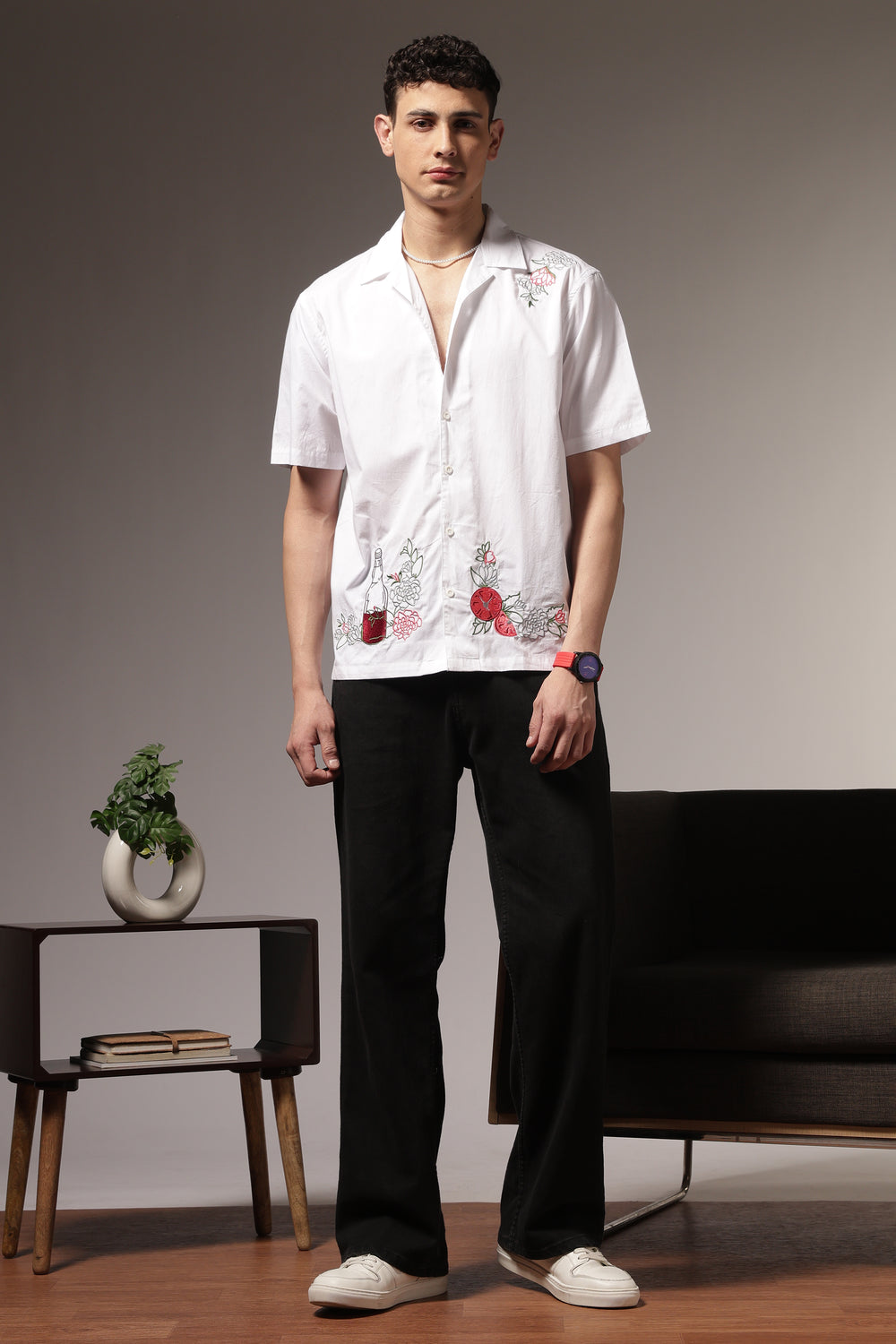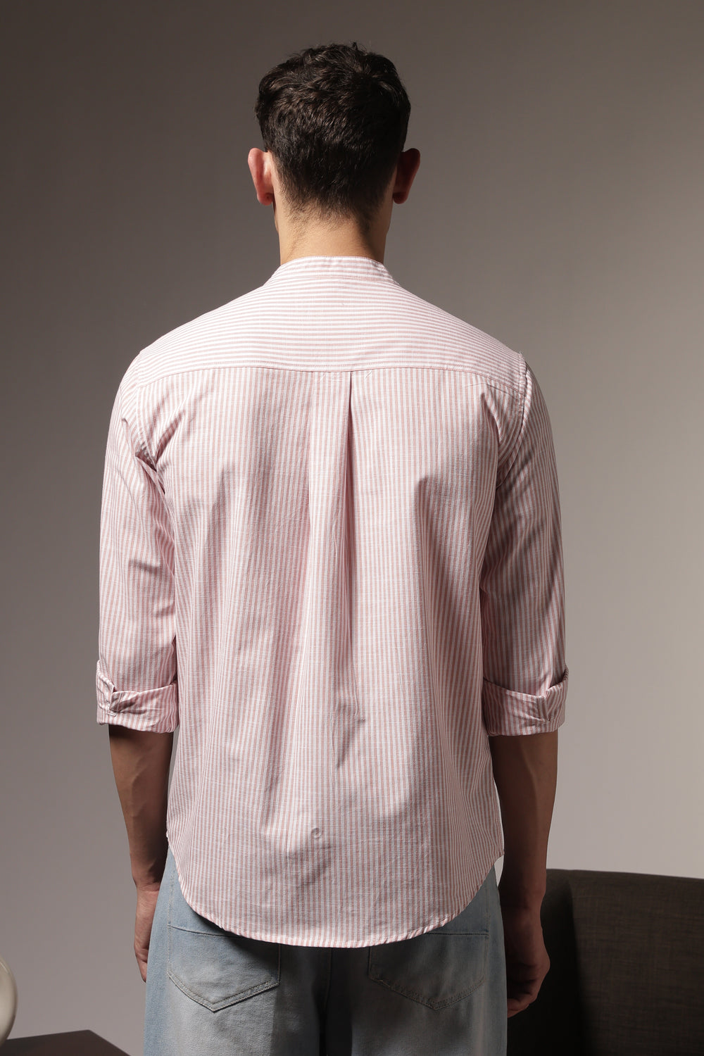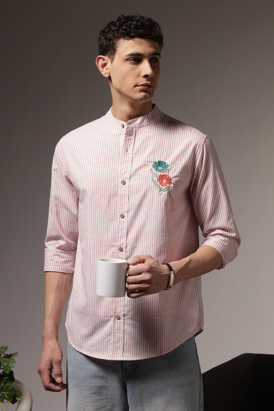 Twin-Flower: Stripes Pink Stripes Embroidery Shirt