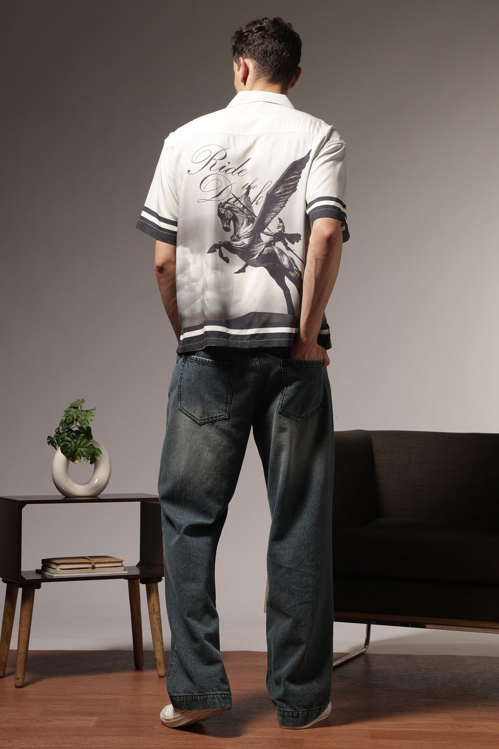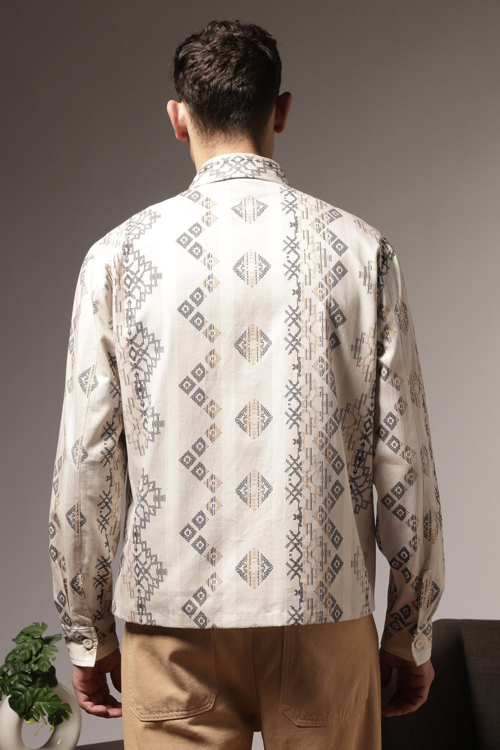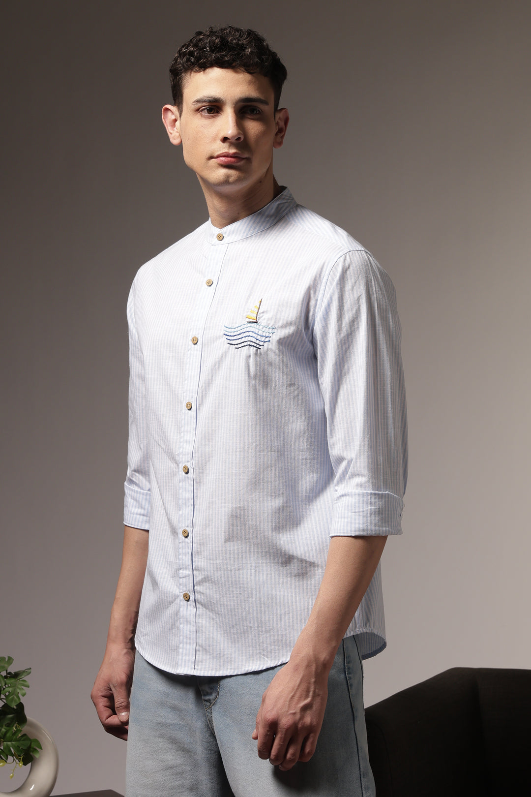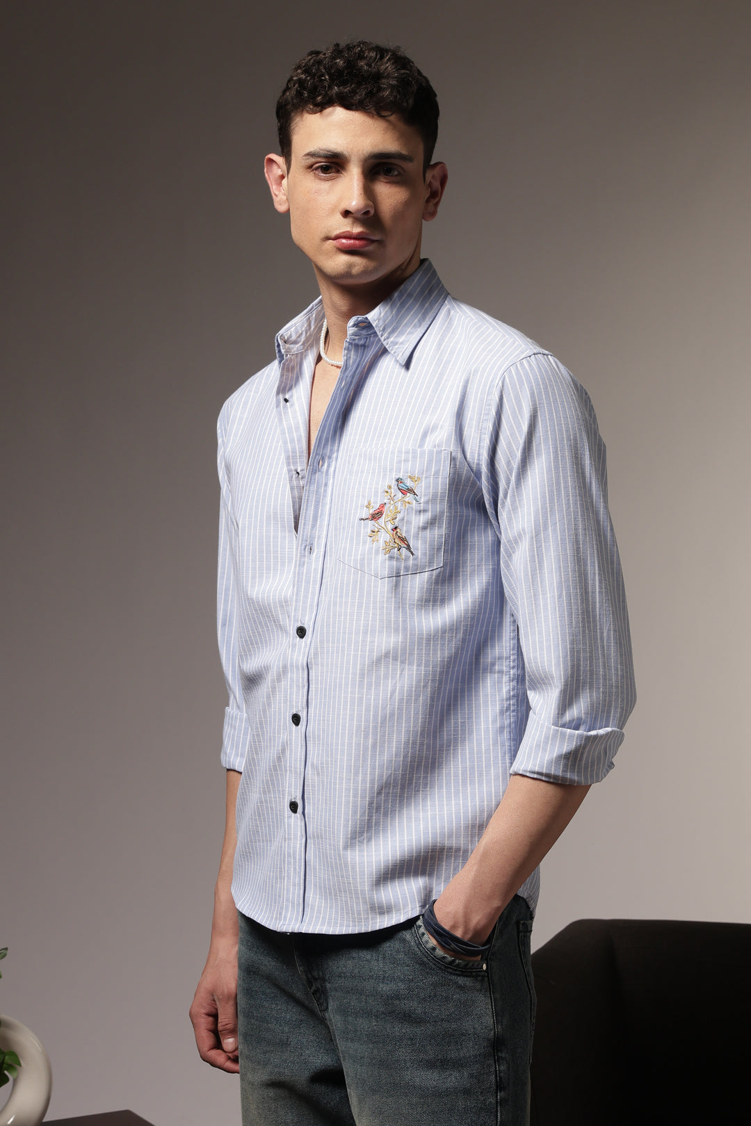 Stripes: Bird Pocket Embroidery Blue Shirt